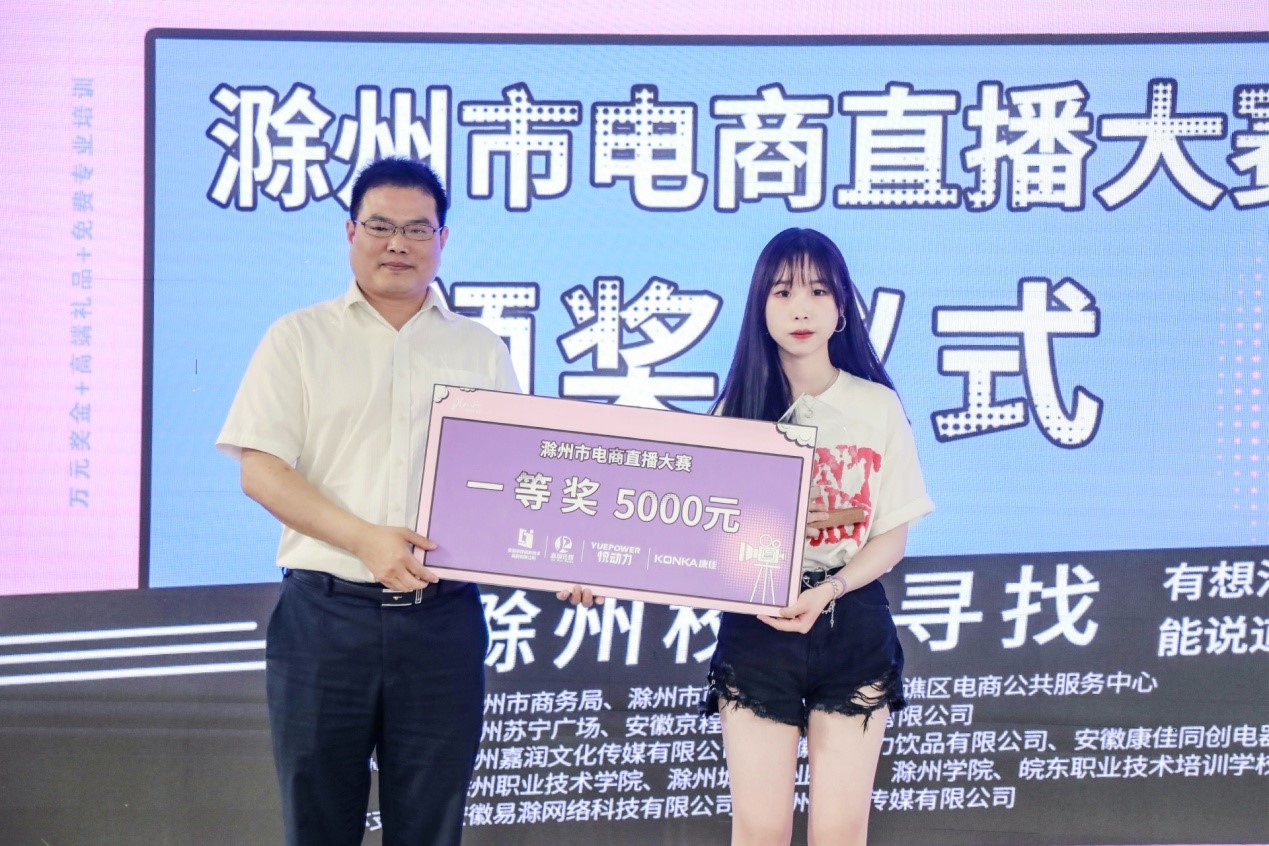 本次大赛由滁州市商务局、滁州市南谯区商务局主办,滁州苏宁广场、安徽京程信息技术发展有限公司、南谯区电商公共服务中心承办,自大赛启动以来,共有来自滁州3所高校的600余名大学生报赛参赛,45支团队进入复赛。历经一系列激烈角逐,共有6支优秀团队脱颖而出进入决赛环节,呈现了一场直播带货的实战“盛宴”,beat365学生在众多参赛队伍中脱颖而出。