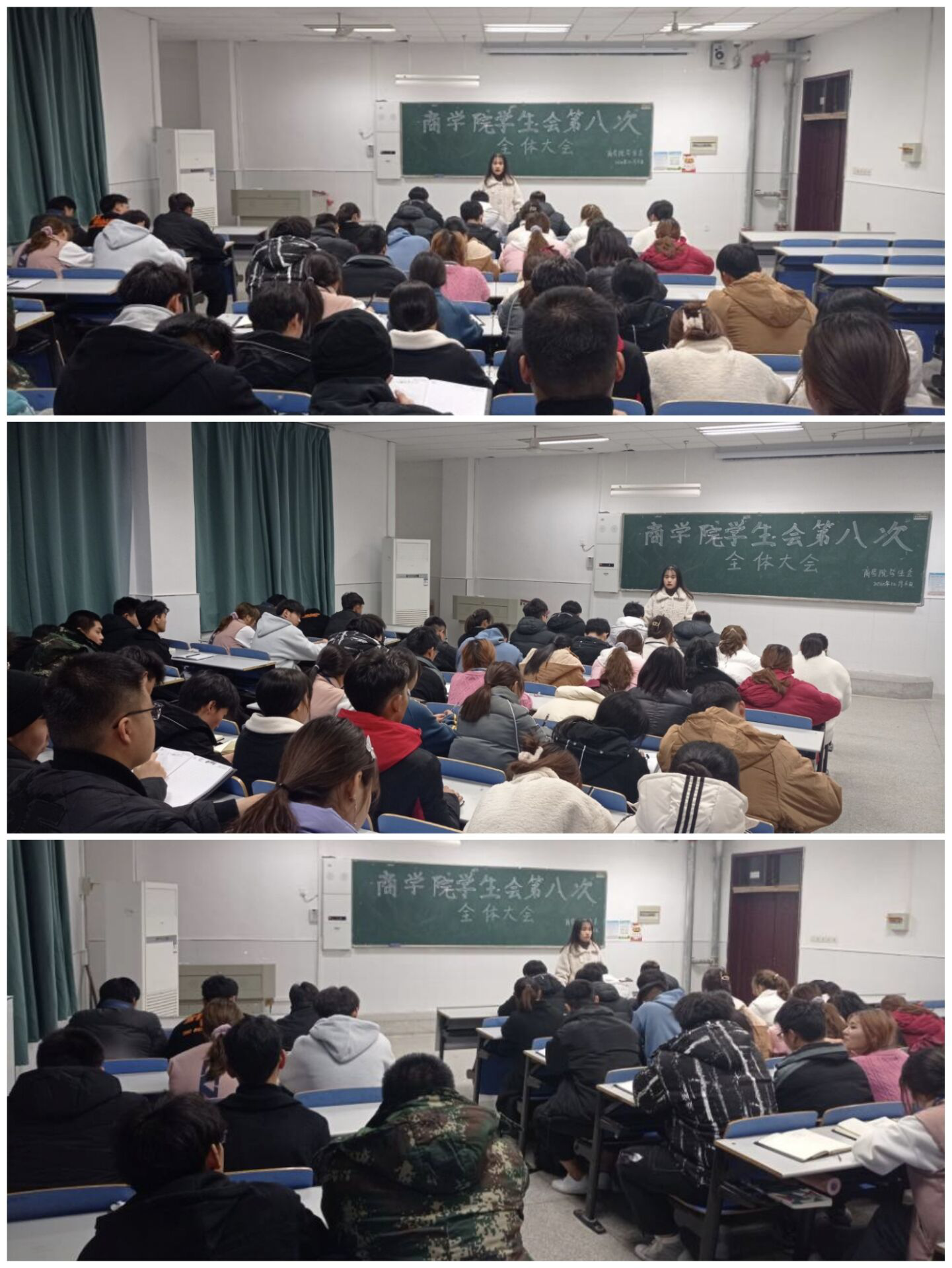 为加强学生会内部管理,提升学生工作质量,商学院学生会于12月6日在1119教室召开第八次全体大会。