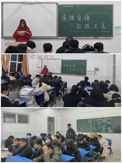 各班班会以“廉洁自律,弘扬正气”为主题,通过主题演讲、视频学习、辅导员领学等多种多样的方式,带领每位同学深入学习了廉洁与自律的重要社会作用,让大家明白作为新时代的青年人必须要有担当、有责任心。同时鼓励大家积极投身“廉政文化进校园”主题活动,自觉参与,带头实践,培养"廉洁、诚信、公正、俭朴”的品德,争做社会主义四有新人。