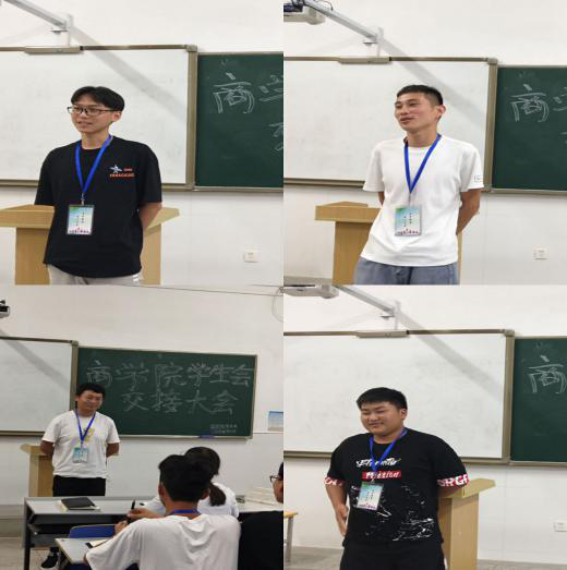 会议的开始,由学生会主席张贵巧宣布商学院学生会新的主席团及各任部长人员名单。希望各部门负责人能尽快了解部门工作,熟悉工作事宜,确保后续工作可以顺利开展。随后,由新任商学院学生会主席团成员和各个部长进行简单发言,大家纷纷上台展示自己,并从自身特点,从部门认知,亦或是对于学生会的改进与未来,从中展示出一幅幅美丽的构图。同时也展示了学生会一年来的点点滴滴,也希望能够带领大一新生们将学生会的工作完成的更加出色。
