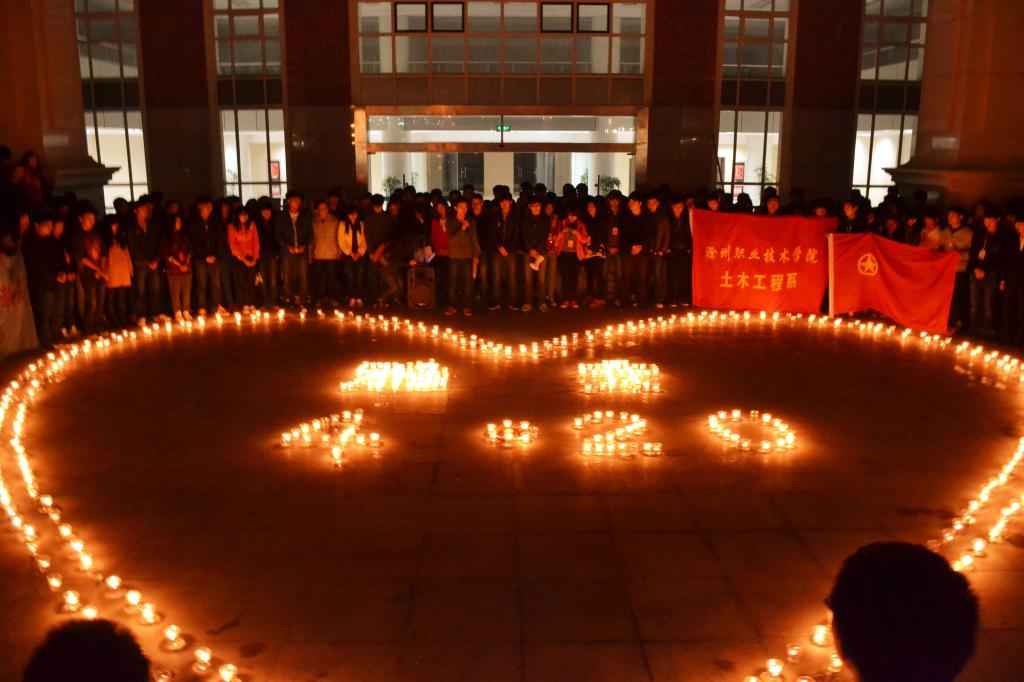 活动现场,有来自各系部的近四百名同学,大家用蜡烛,摆出爱心、“4.20”、“雅安”字样,由主持人发起为在雅安7级地震中遇难的同胞们默哀一分钟,并在祈福条幅上签下了自己对遇难同胞们的祝福、对灾区人民的祝福,现场同学们高呼“雅安加油、中国加油”,同学们声音洪亮,振奋人心。