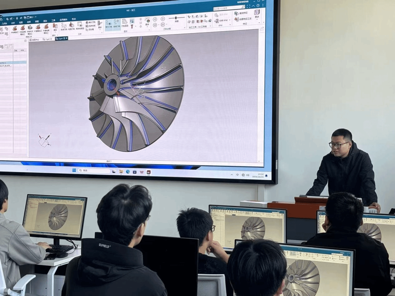 讲座中,陈军深入浅出地介绍了复杂叶轮零件在五轴编程与加工中的关键技术和难点要点。他通过生动的案例分析,将抽象的理论知识转化为具体可感的实际操作场景,让在场的师生们仿佛置身于车间一线,亲眼目睹了复杂叶轮零件从工艺到编程到加工的全过程。陈军强调,不仅要学习技术,更要培养创新思维和解决实际问题的能力。他鼓励学生们要勇于探索、敢于实践,不断提升自己的专业技能水平。