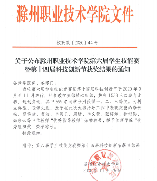 校政教〔2020〕44号 关于公布beat365在线唯一官网第六届学生技能竞赛暨第十四届科技创新节获奖结果的通知.pdf