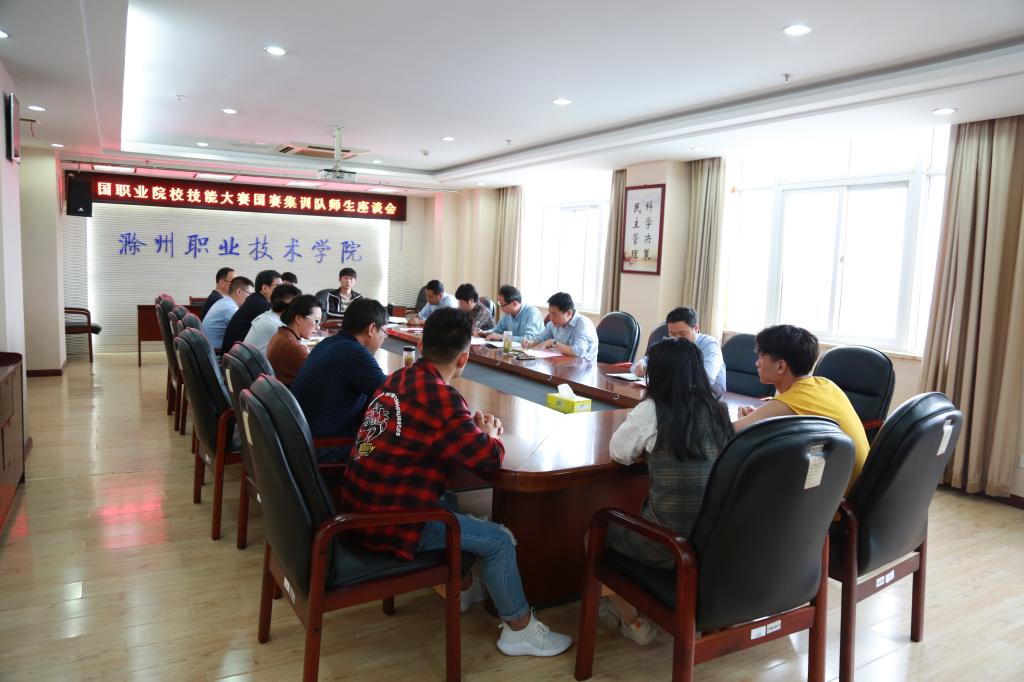 5月5日,学校在综合楼804会议室召开了2019年全国职业院校技能大赛国赛集训队师生座谈会。校党委副书记、校长许雪峰、校党委委员、副校长江洁、校实训中心主任曹晓斌、土木工程系主任朱永祥、传媒工程系副主任闻建强、汽车工程系副主任张信群,2019年全国职业院校技能大赛国赛集训队师生及校实训中心相关人员参加了会议。会议由校实训中心主任曹晓斌主持。