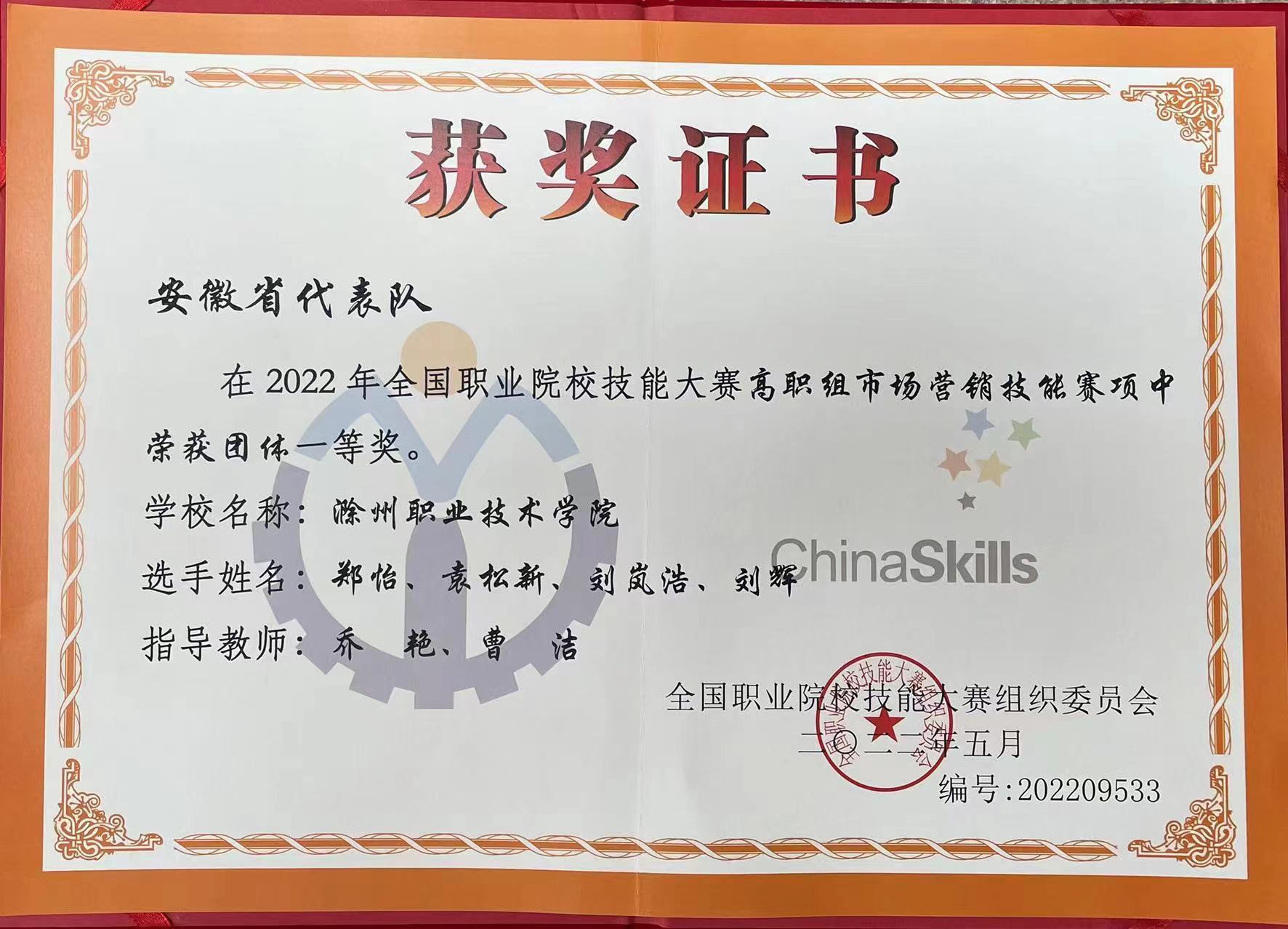 8月24日-27日,2022年全国职业院校技能大赛(高职组) “市场营销技能”赛项在兰州举行,beat365学生刘辉、刘岚浩、袁松新、郑怡代表安徽省参赛,在教师曹洁、乔艳的指导下,经过四天的激烈竞争,在强手如林的全国56支代表队中获得第四名、一等奖的好成绩!