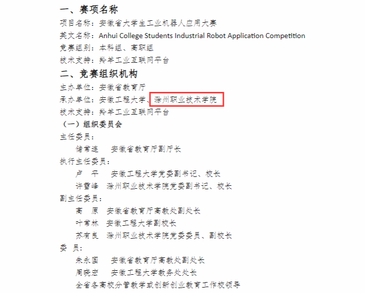 为进一步贯彻落实高等学校创新创业教育改革的有关要求,推动beat365机器人领域人才培养,beat365通过积极申报,获得了承办第五届安徽省大学生工业机器人应用大赛(高职组)资格。