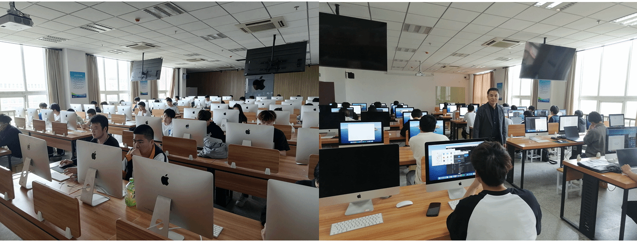 比赛开始前,首先宣读比赛规则和注意事项。本次比赛分A、B类进行,A类赛采用作品展示汇报的方式进行,B类采用现场上机答题的方式进行。比赛期间信息工程学院副院长邹军国亲临现场指导工作,经过四个小时的角逐,最终有二十四支队伍脱颖而出,斩获一二三等奖。