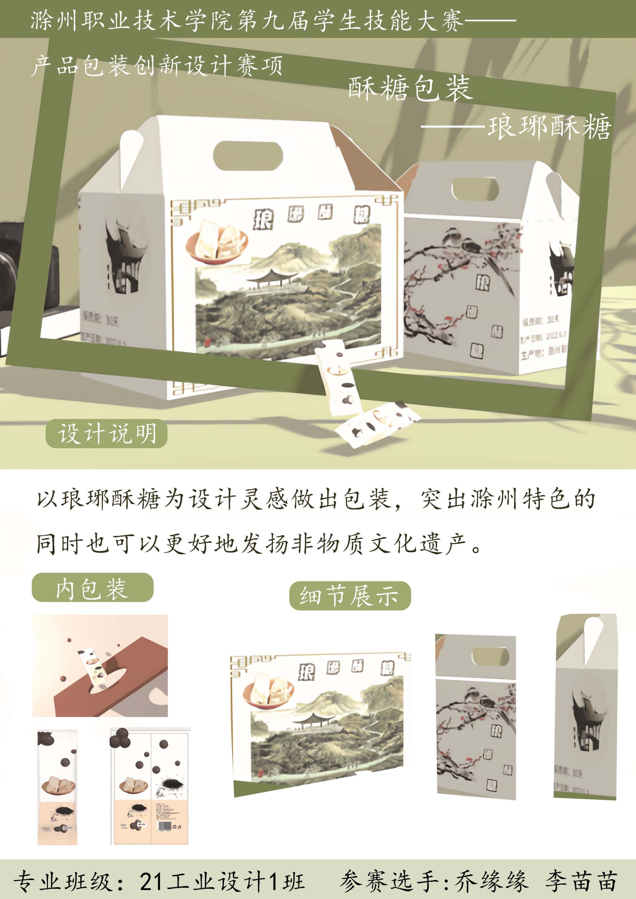 为全面提升学生技能水平和学习的积极性,营造“以赛促学、比学赶超”的良好氛围,2023年5月8日下午,校第九届技能大赛“产品包装创新设计”赛项在4号楼504智慧教室顺利开展,本次包装设计赛项围绕”环保·智造·时尚”这一主题,从包装艺术设计、包装结构设计、材料与工艺设计三个方向进行设计、制作。