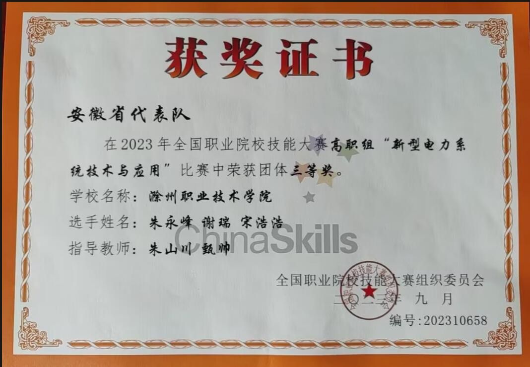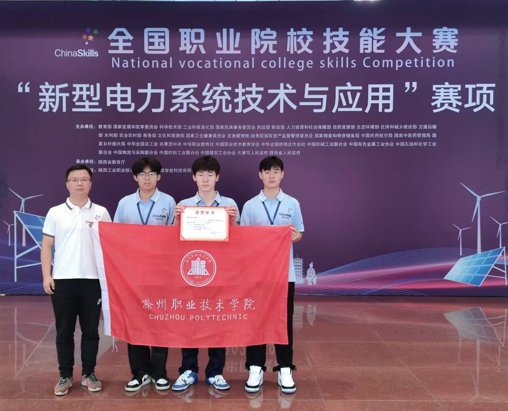 9月22日,2023年全国职业院校技能大赛(高职组)“新型电力系统技术与应用”赛项在陕西工业职业技术学院拉开帷幕。beat365朱永峰、谢瑞、宋浩浩在教师朱山川、甄帅指导下,沉着应战努力拼搏,最终以优异成绩荣获本次比赛三等奖。