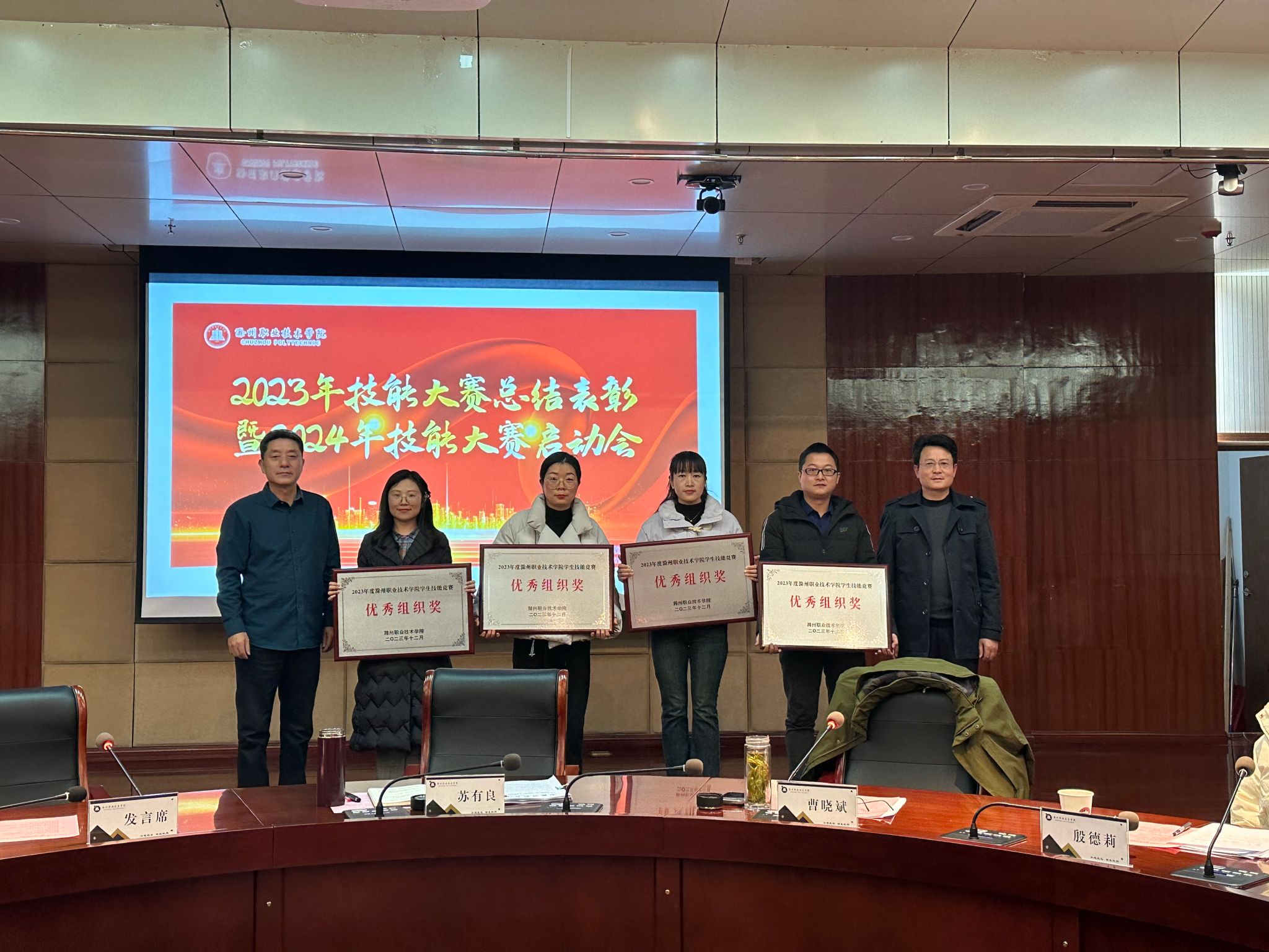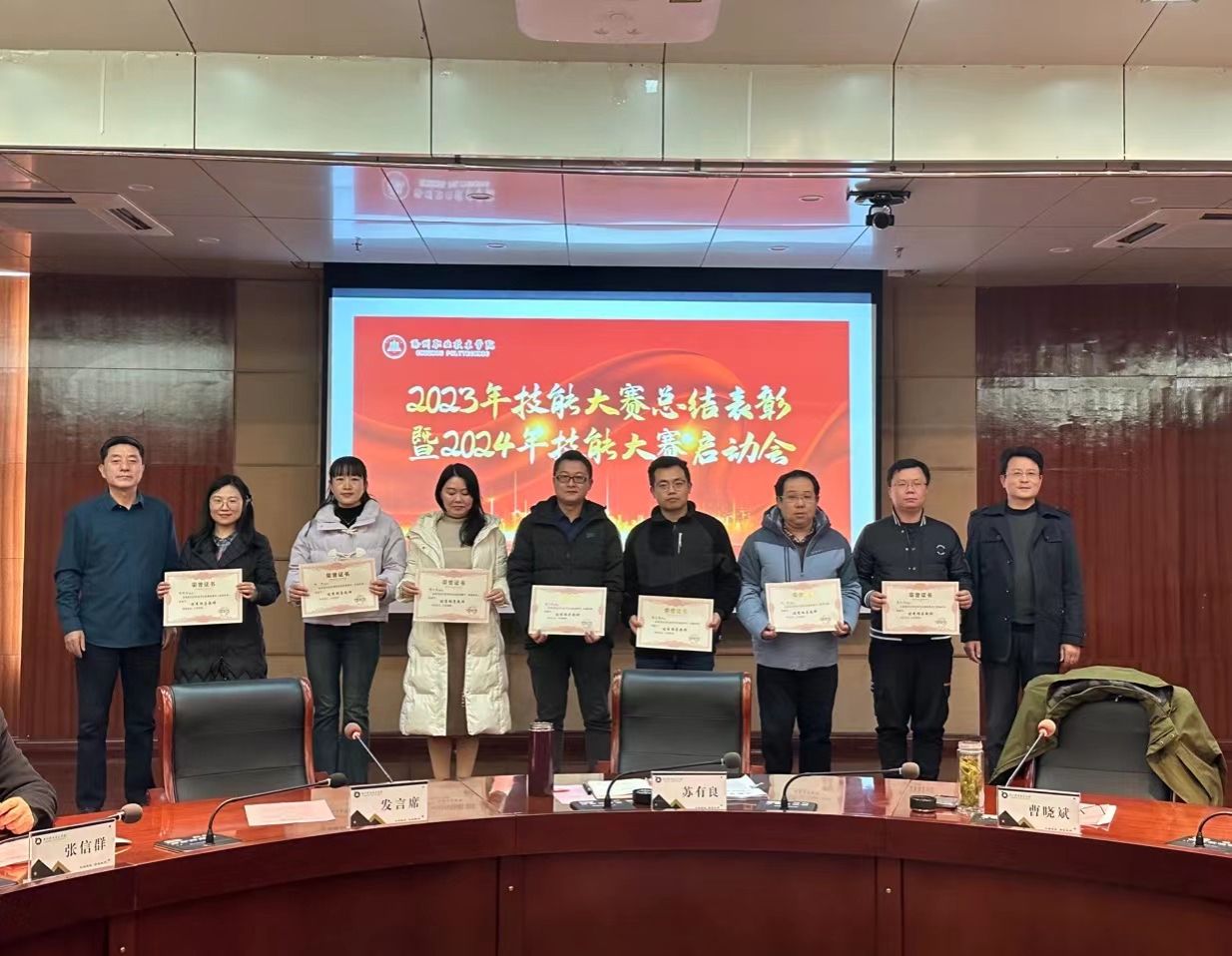 会上,曹晓斌宣读《关于表彰2023年学生技能竞赛获得者相关情况的通知》。与会领导为优秀组织院部、优秀指导教师、技能能手颁发荣誉证书。建筑工程学院副院长张国富、教师代表张婷婷、学生代表仝华政做交流发言,分享了参赛历程与收获。实验实训中心姚珺解读《安徽省教育厅关于印发2023年安徽省职业院校技能大赛(高职组)方案的通知》文件精神及通报相关工作安排。