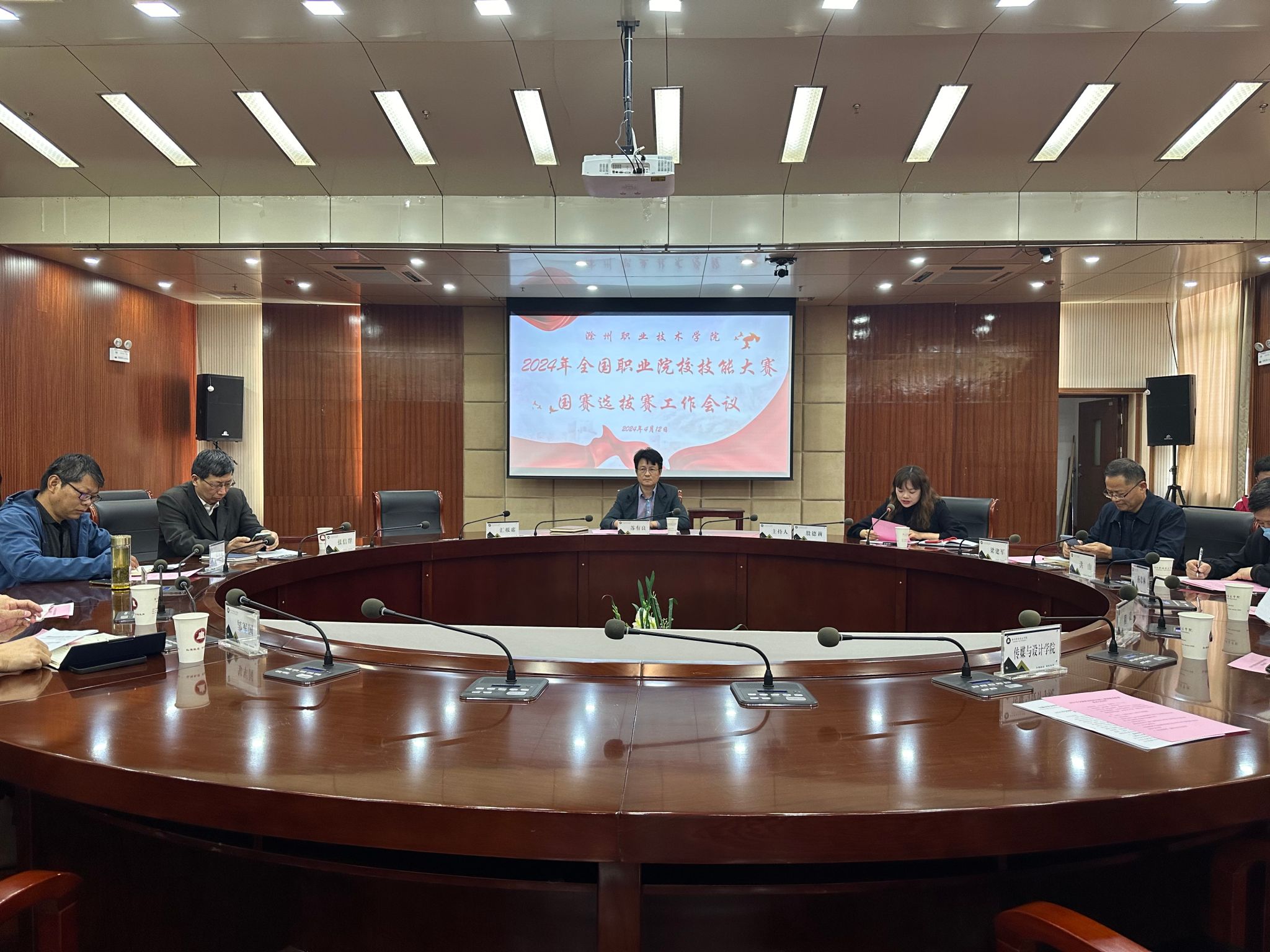 4月12日下午4:20,beat365在综合楼11楼会议室召开2024年全国职业院校技能大赛国赛选拔赛工作会议。校党委委员、副校长苏有良、实验实训中心副主任殷德莉、相关教学院部院长、入选国赛选拔赛队伍指导教师和学生代表,实验实训中心相关人员参加会议,会议由殷德莉主持。