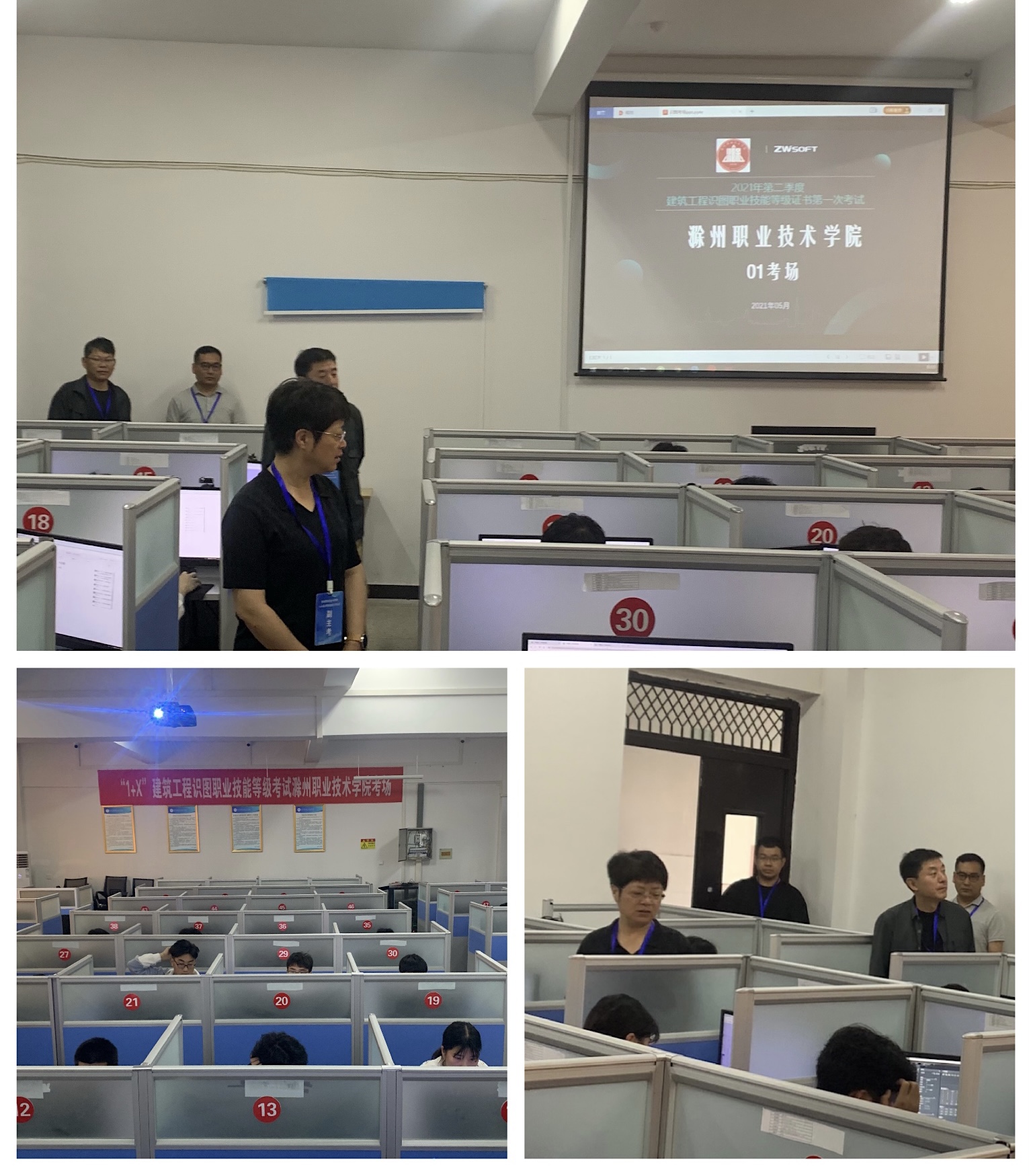 作为全国教育部“1+X”证书考试的试点单位,beat365在线唯一官网建筑工程学院建筑识图教学团队在建筑工程识图技能证书评价组织(广州中望龙腾)的指导下,在校实训中心、信息中心等相关部门配合下,精心组织,顺利完成组织动员、学生培训、考生报名、考前模拟、场地布置和设备调试等各环节的准备工作,并严格按照教育部“1+X”证书制度考核管理规定部署考务组织工作。