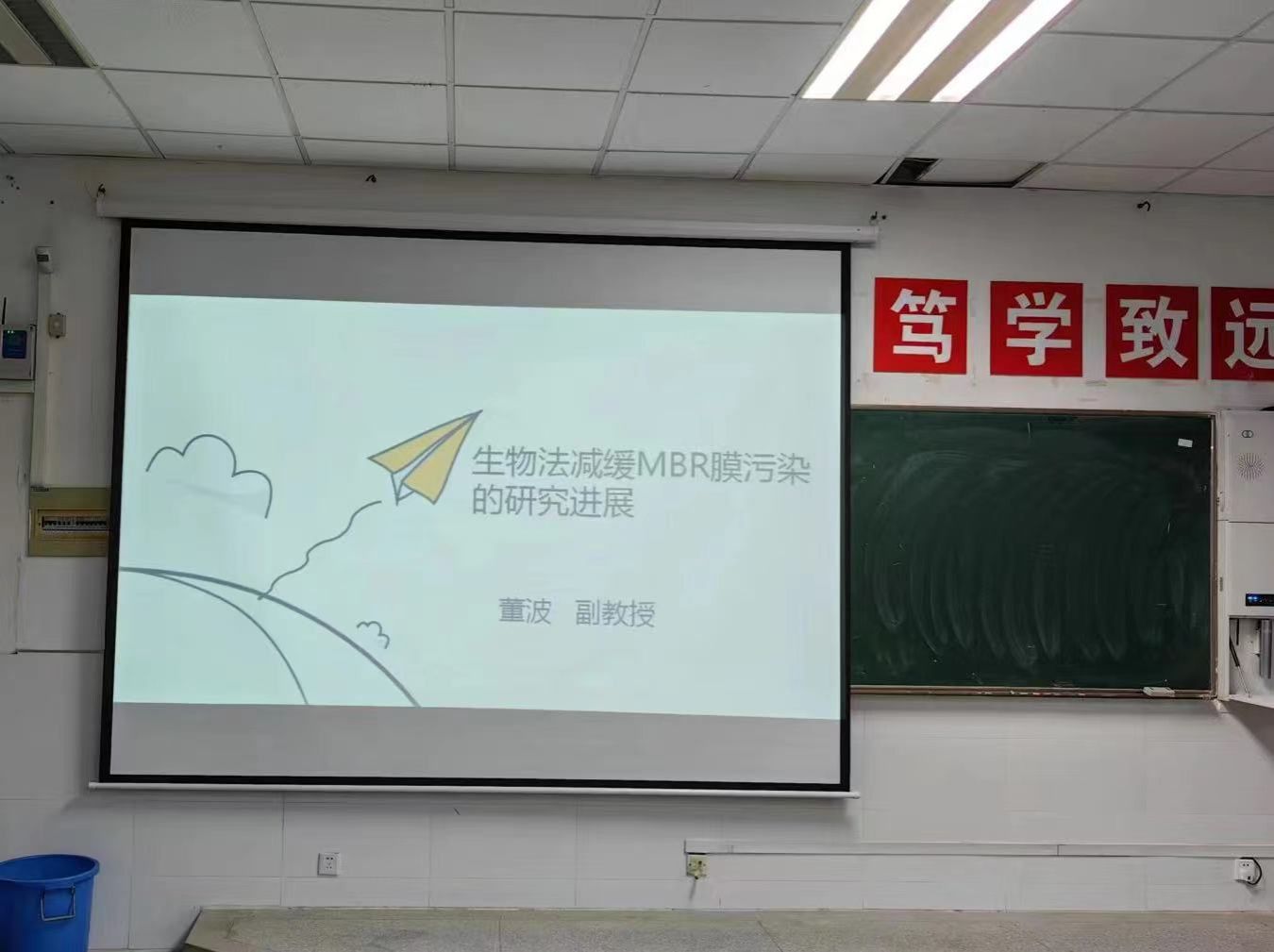 3月1日晚,建筑工程学院董波副教授,在4101教室举办题为“生物法减缓MBR膜污染的研究进展”的学术讲座;程毓主持讲座。