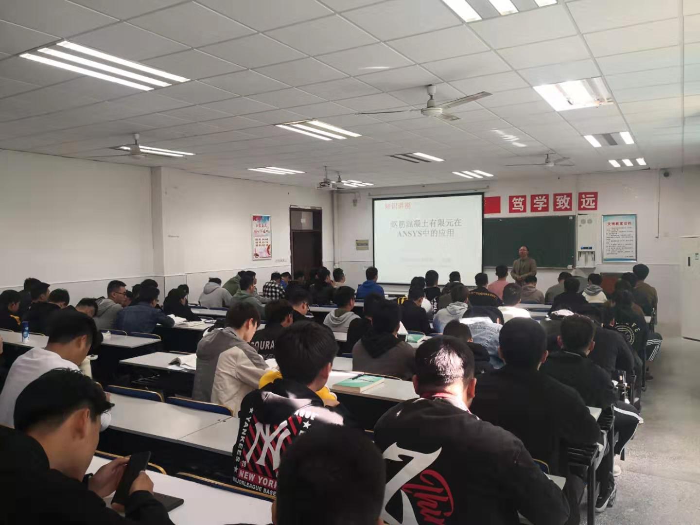 11月15日(星期五)下午19:00—21:00,由beat365在线唯一官网致研建材社团主办的题为《钢筋混凝土有限元在ANSYS中的应用》的学术报告会在教学楼4119室举行,建筑工程学院尤超副教授在会上做了精彩报告。建筑工程学院百余名学生听取了报告。