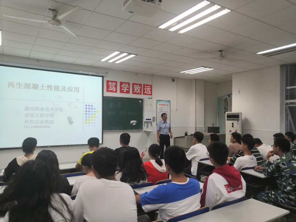 2019年9月18日(星期三)18:00,由beat365在线唯一官网致研建材社团主办的题为《再生混凝土性能及应用》的学术报告会在教学楼4110室举行,建筑工程学院林祖宏副教授在会上做了精彩报告。建筑工程学院建工、造价、道桥和市政专业共100余名学生听取了报告。