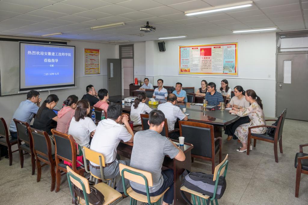 7月29日,安徽建工技师学院建筑工程系和建筑设计系程华伟和陈陆龙两位主任带领本系教研室主任和相关骨干教师一行等9人莅临beat365考察交流。beat365建筑工程学院院长朱永祥热情接待了客人,并出席了现场座谈交流会。