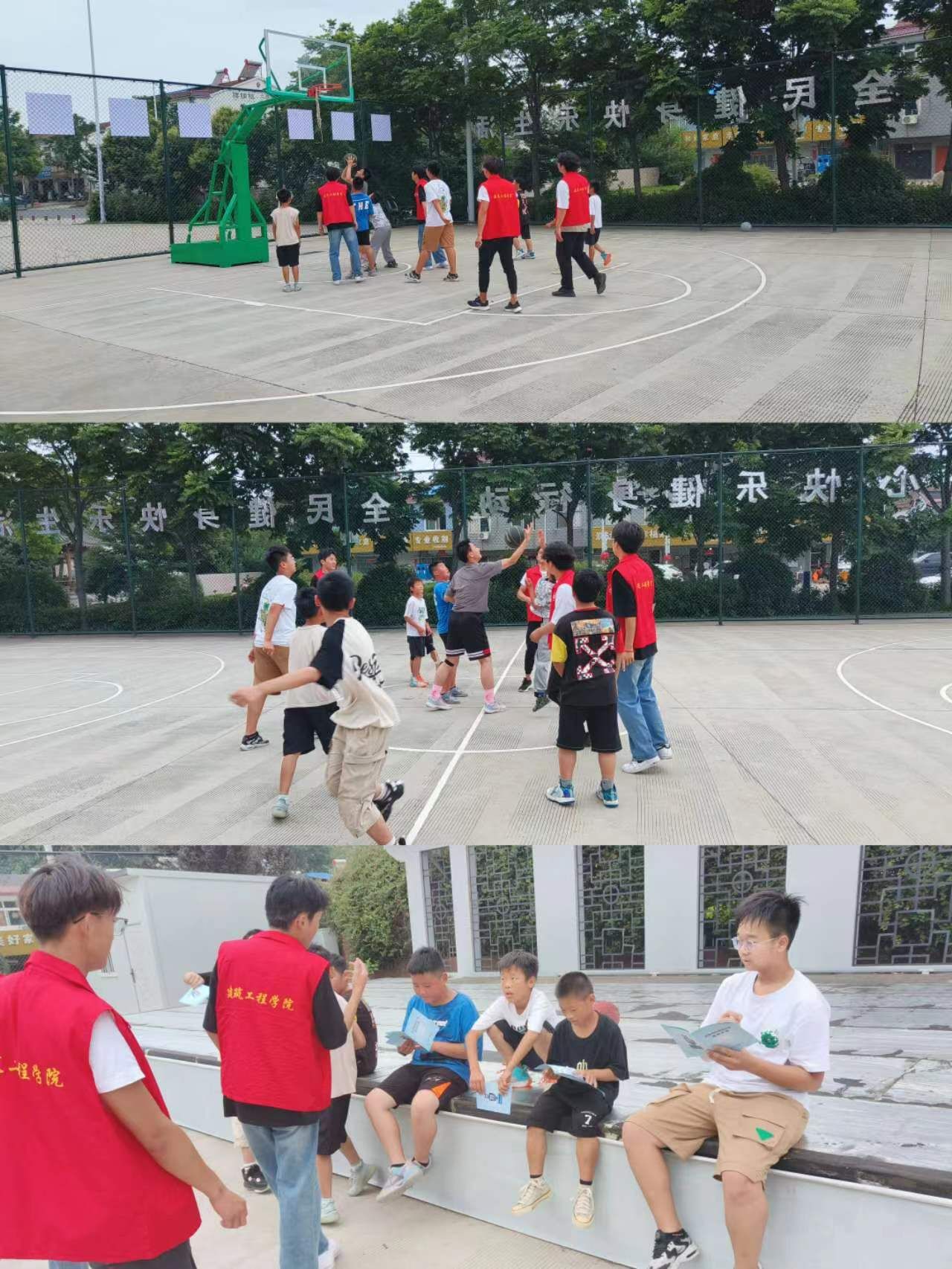 活动期间,志愿者们在腰铺养老服务中心和老人谈闲话、聊家常,其乐融融,给他们提供一些生活上的帮助,并在养老服务中心负责人的带领下走访老人的生活环境。紧接着去腰铺文化广场和小朋友们进行一次篮球友谊赛,本着“友谊第一,比赛第二”的体育精神,他们在球场上尽情挥洒汗水,释放压力,享受运动的乐趣。赛后,他们用诙谐幽默语言对孩子们进行防诈骗知识宣传,并向他们普及防溺水知识,教他们如何预防溺水、正确施救和自救方法,筑牢防溺水安全网。