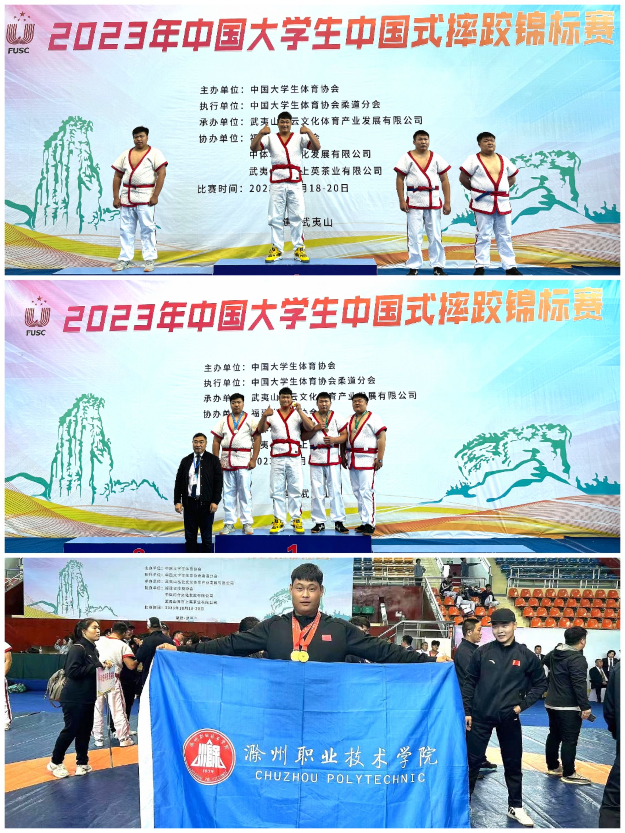 为加快建设体育强国,弘扬中华体育精神,弘扬体育道德风尚,重视大学生的体育发展,beat365在线唯一官网学生于10月18日至10月20日参加武夷山2023年中国大学生中国式摔跤锦标赛,其中建筑工程学院曾令焜荣获第一名。