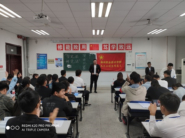 10月23日下午2点,建筑工程学院团总支举办“学宪法 讲宪法”主题演讲比赛。本次比赛的评委是建筑工程学院团总支副书记赵子俊,建筑工程学院学生会主席谢齐轩,电气工程学院团总支副书记邓广周,信息工程学院团总支副书记邓刘畅,互联网学院团总支副书记陈雪晴,管理学院团总支副书记梁华玲,商学院团总支副书记王磊,汽车学院团总支副书记张立诚,院志愿者服务中心部长孙涛。经过各班初赛最终推选出33名选手参加比赛,并有100多名观众现场观看了本次活动。