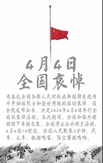 2020年4月4日清明节,全国各族人民对抗击牺牲的烈士和病逝于新冠病毒的同胞举行全国哀悼,从寒冬,到春天,多少人用生命守护生命。英烈为家国舍生忘死,逝世同胞亦盼山河无恙。愿花飨逝者、春暖斯人。