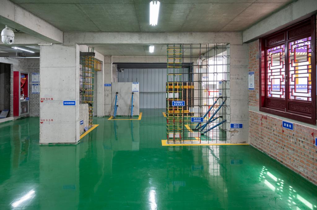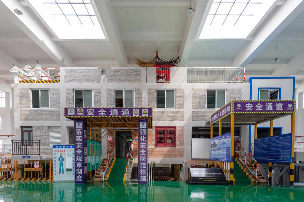 建筑工法楼实训基地,所含的砖混结构、框架剪力墙结构、钢结构三大部分的各节点形成对应的结构体系。砖混、混凝土、钢结构之间有变形缝,并有机的将300多年分部分项建筑节点融合为一个整体建筑物,满足整体性、标准性、实用性等要求。主要用于建筑构造认知实训;主体结构施工实训;装饰施工工艺实训;建筑设备工程实训;建筑结构认知实训;地基与基础工程施工实训;防水工程施工实训;质量事故分析实训;施工放线实训等。