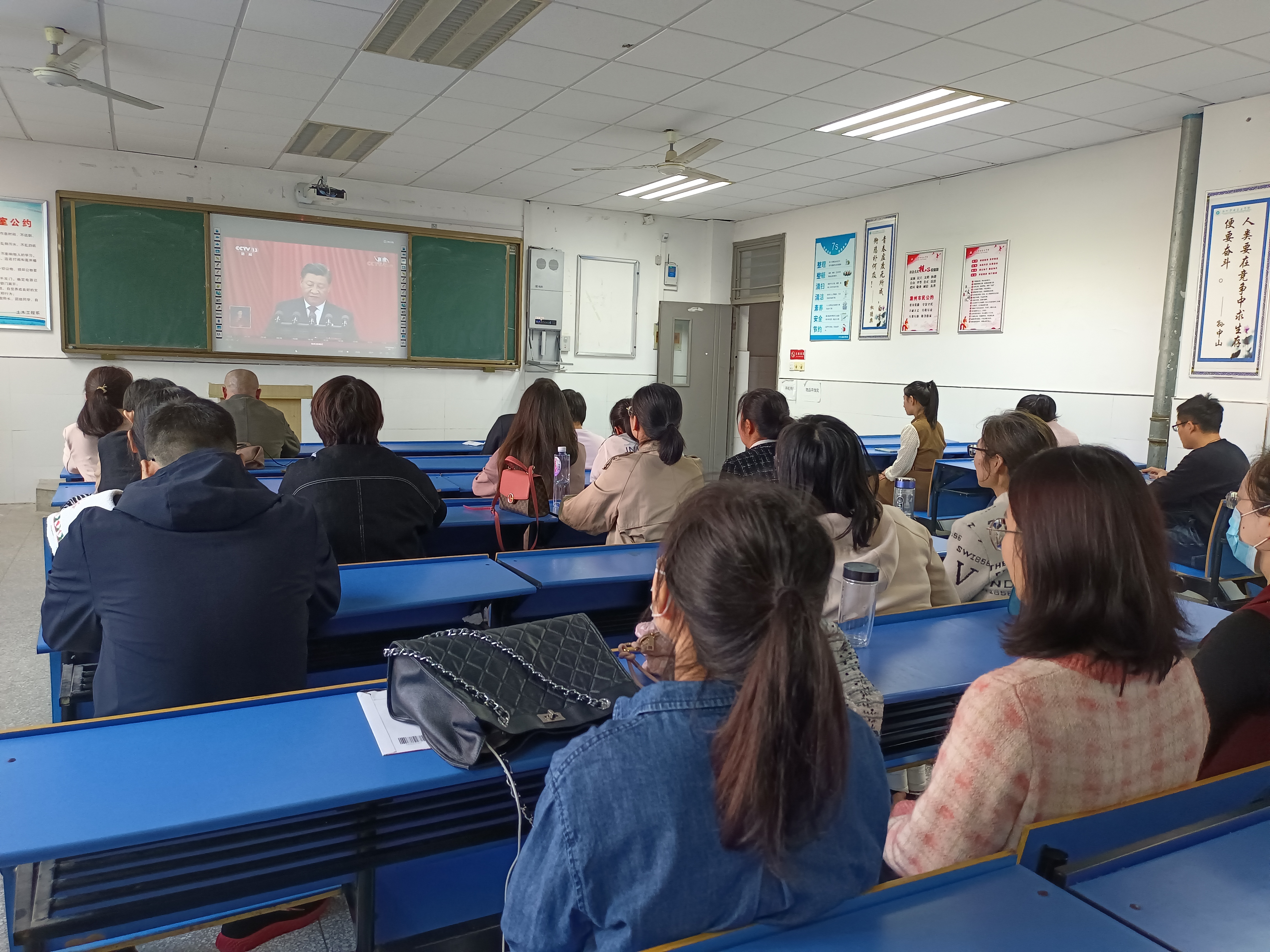 收看直播中,老师们精神饱满、端坐静听,在听到一个个振奋人心的消息和举世瞩目的成就时,大家不时爆发出阵阵掌声。