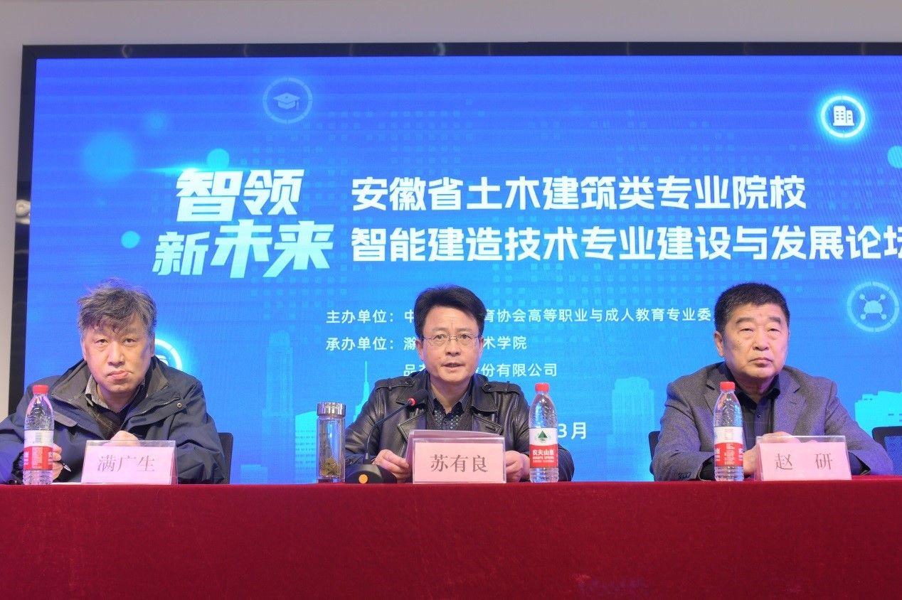 会中,安徽水利水电职业技术学院建筑工程学院满广生书记、福建工程学院土木工程学院智能建造系郑莲琼主任、浙江广厦职业技术大学建筑工程学院王春福副院长、品茗科技股份有限公司数字教育部盛黎副总经理分别做了《”双高计划“专业群建设途径》、《智能建造新工科专业核心课程建设与实践》、《职业本科土建专业申报与建设实践探索》、《面向智能建造实训教学的模块化设计与创新》的报告。