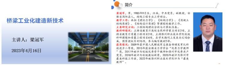 4月16日晚上7:00—9:00,梁冠军副教授在致学楼4110教室举办了题为“桥梁工业化建造技术”的讲座,建筑工程学院大一、大二年级在校学生听取了讲座。