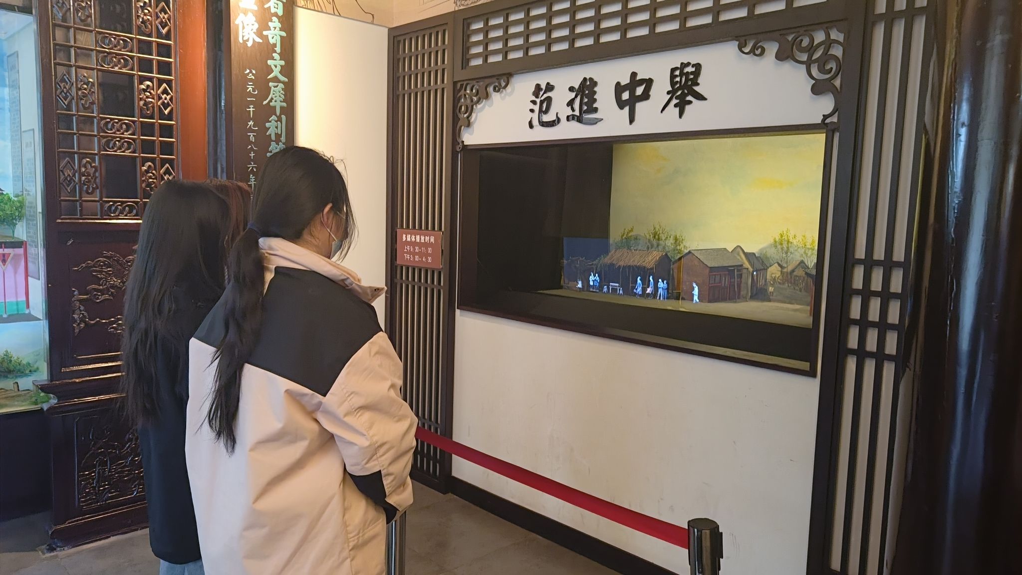 吴敬梓纪念馆坐落于全椒县,门前有玉石栏杆的敬梓桥,站在桥上,整个纪念馆尽收眼底,背山面水,仿明清建筑,雕梁画栋,翘角飞檐,古朴典雅,既有南方园林之秀,又具北方建筑之雄。走下敬梓桥,学生们来到纪念馆门前,门匾上书写着“吴敬梓纪念馆”六个刚劲有力的大字,门两边各有两座鼓形旗杆石象征着吴氏家族当时的鼎盛。大门前两边是两排高大的青松,好似仪仗队在迎接着八方宾客,四周绿树成荫,掩映着灰瓦白墙,真是碧水馆前流,绿树馆边合!还有千姿百态的盆景,高低错落有致,布局天妙趣成。
