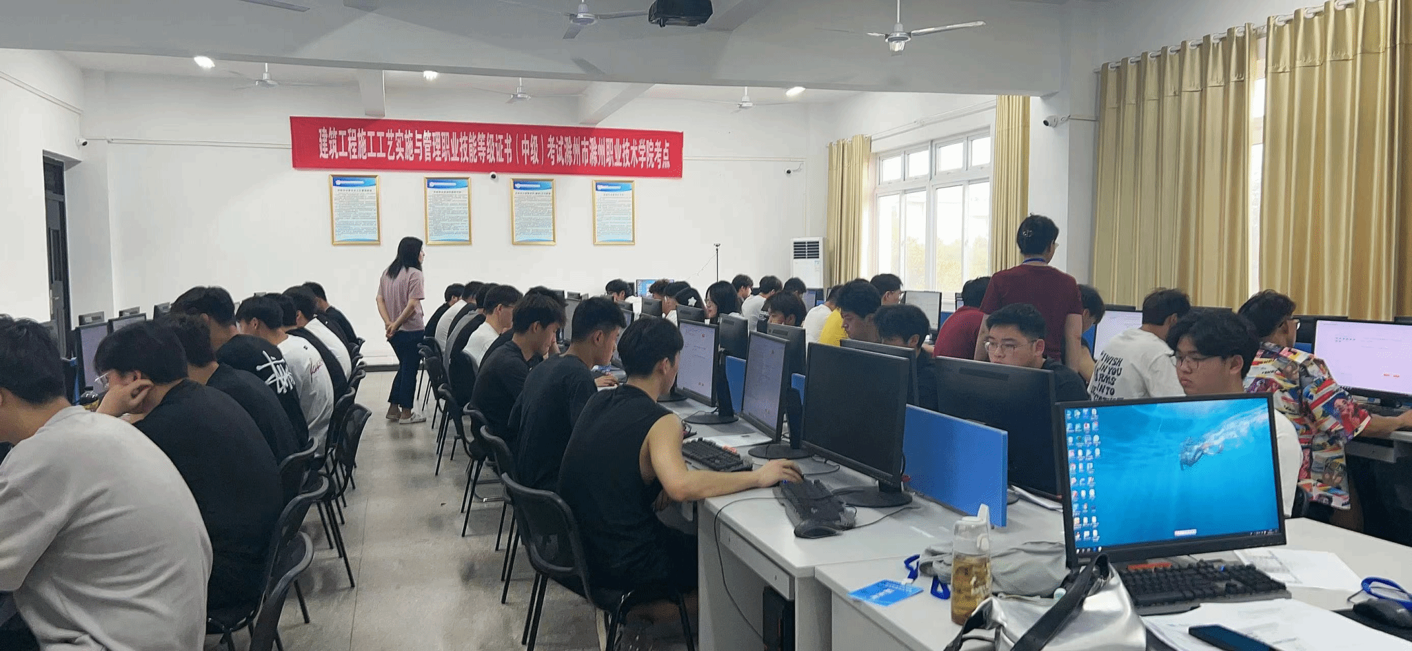 2024年6月19日下午,“1+X”建筑工程施工工艺实施与管理职业技能等级证书考试(中级)在beat365在线唯一官网考点建筑技术综合实训馆JG205机房顺利举行,共计40名建筑工程技术专业学生参加了此次考试。