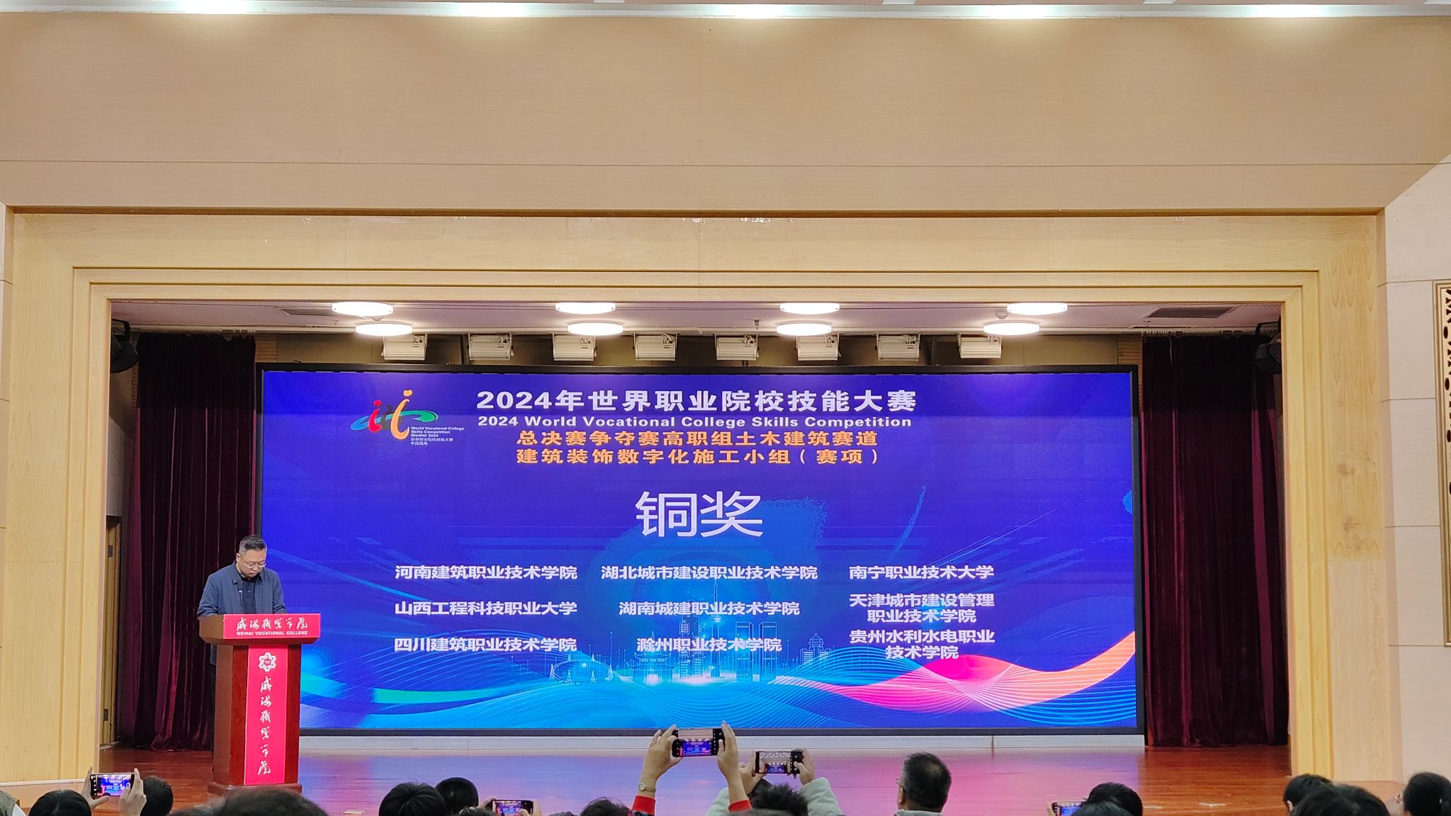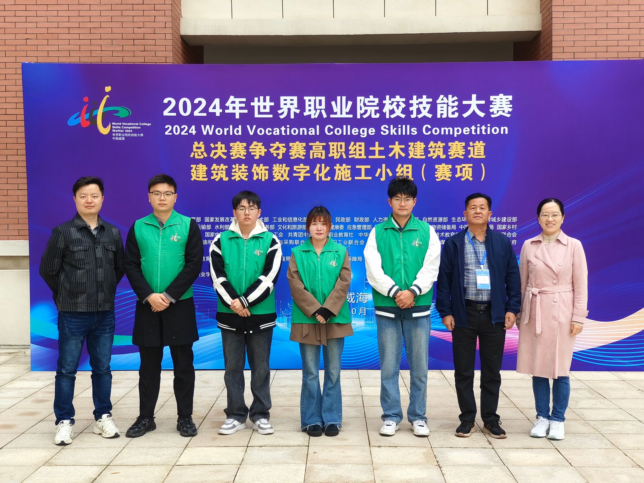 10月26日,2024年世界职业院校技能大赛总决赛高职组“建筑装饰数字化施工”赛项争夺赛在山东威海举办,共有来自全国30个省、市、自治区的60个代表队参赛。本届大赛主题是“技炫青春 能创未来”,突出“技能、学校和师生、国际交流”三大元素,展示职业学校师生精“技”求精、敢打敢拼、朝气蓬勃、积极向上的精神风貌。beat365建筑工程学院朱永祥院长带队,谭启明、林秋怡老师指导的建筑装饰工程技术专业魏亚圳(毕业生)、董傲然、李宏喜、宋玉荣获铜奖。