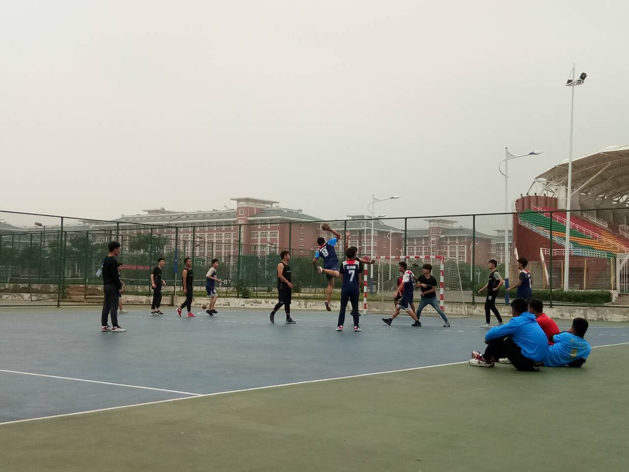 5月16日土木系与食环系在beat365在线唯一官网体育场展开了激烈的手球比赛。赛前各参赛选手参加相关培训了解手球运动和比赛的相关知识,赛时组织人员提前到场并准备好了相关器械。各组队员按时到达赛场,队员分为主力与替补两部分组成,在必须的准备活动之后,大家本着“友谊第一、比赛第二”的原则开始了比赛。