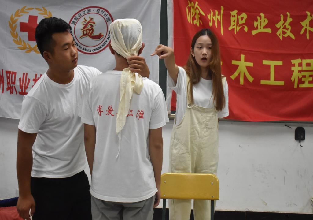本次培训活动由我系学干葛绍启、方丽、刘浪主持完成。培训人员先向同学们介绍了红十字会的作用,以及紧急情况的处理。通过现场演示操作介绍心肺复苏,脑组织溢出,左前臂骨折的应急救护处理办法。并邀请大一新生也积极参与现场互动,实际进行做了心肺复苏,创伤救护等操作。