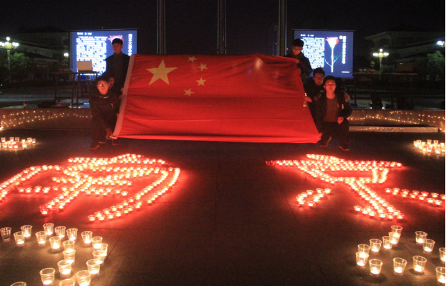 活动在点烛火仪式中拉开了序幕,轻盈的烛光随着晚风轻轻摇曳,同学们在蜡烛摆出的图样前肃立,接着由滁州学院代表褚春蔚为我们宣读了公祭词,勿忘国耻,抚慰亡灵。随后大家在庄严的红旗下默哀三分钟,缅怀同胞,祈祷和平。接着由参加活动的各校代表在国旗与校旗下合影留念,铭记历史,吾辈自强。最后,全体参加活动的成员进行签字仪式,向遇难同胞寄托我们的哀悼之情。