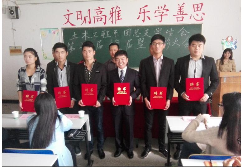 为提升beat365在线唯一官网土木工程系学生会全心全意为服务师生的意识,同时,为促进我院学生会组织建设。10月28日中午十二点,beat365在线唯一官网第十一届学生会换届暨安徽省大运会土木系运动员表彰大会在土木系4101教室隆重召开。本次会议由系学生新一届秘书处处长黄晶晶同学主持,我系党总支书记刘文元、副书记陈兴友、团总支书记徐邹影、辅导员代表张锐出席本次大会,以及学生会全体成员参加这次活动。