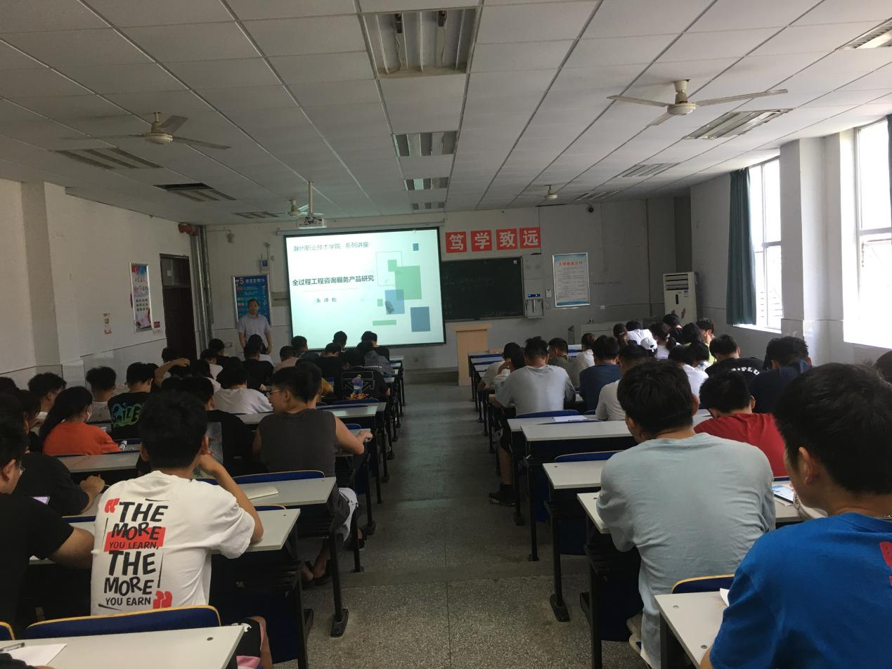 2021年6月13日下午15:30时,建筑工程学院朱泽松副教授在致学楼4110教室,举办题为“全过程工程咨询服务产品研究”的讲座,建筑工程学院建筑工程、工程监理和工程造价专业学生听取了讲座。