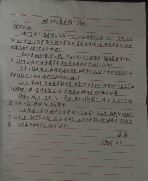 辅导员董波老师在班会上介绍了孝文化的形成、内涵、作用及孝文化在现当代的发展等。早在寒假时,辅导员董波就发短信给每位同学,要求大家在假期里,为父母做一件事,比如“捶一次背”、“做一次饭”。这次班会要求大家给父母写一封信,充分表达对父母的感情,“爱要大声说出口”。