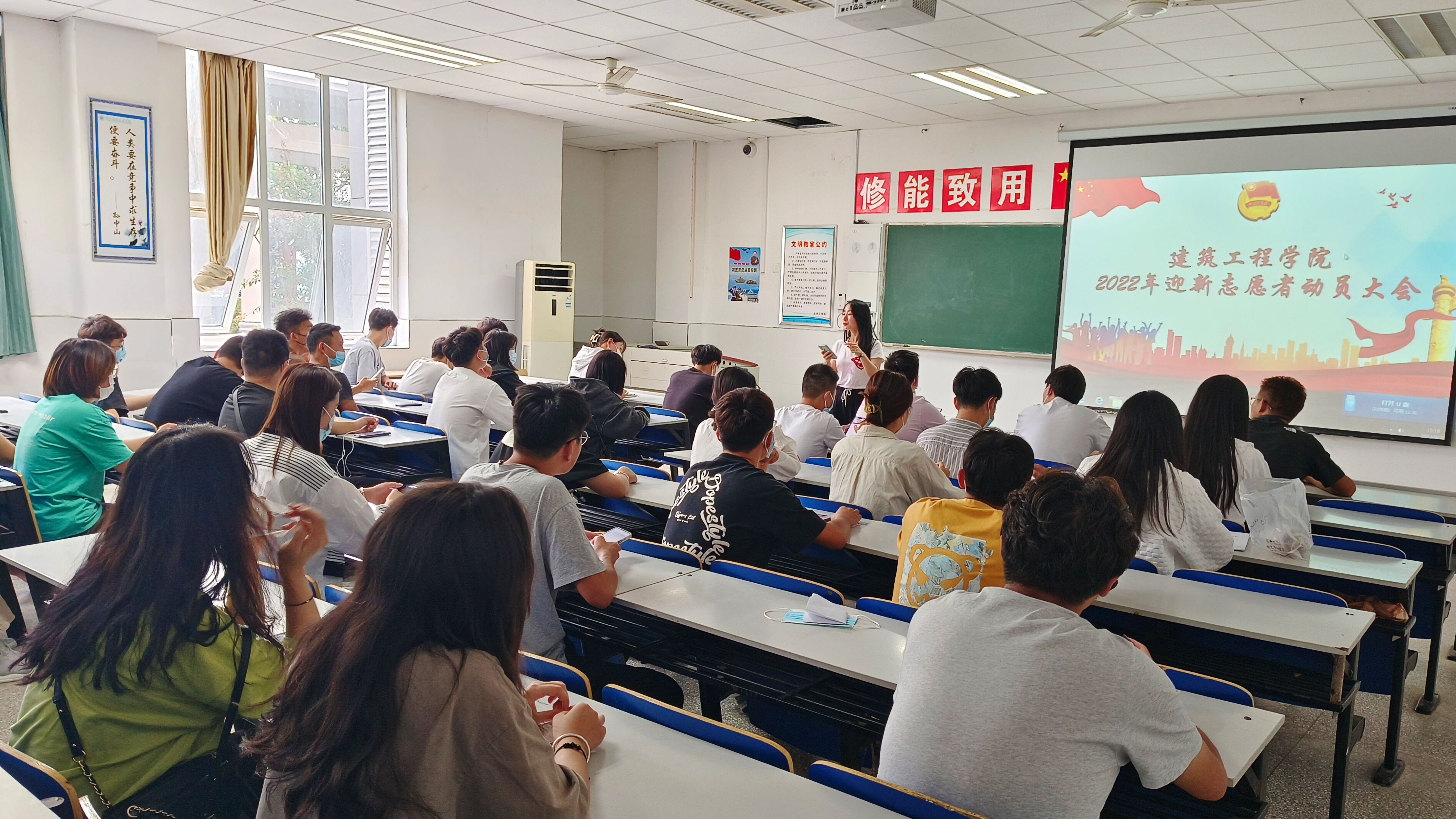为贯彻落实beat365关于疫情防控工作的相关部署,确保我院迎新工作安全有序、高效顺利的展开,9月20日,建筑工程学院在致学楼4119教室召开2022年迎新志愿者动员大会,全体迎新志愿者参加此次培训会,培训会由学院老师晋文婷主持。