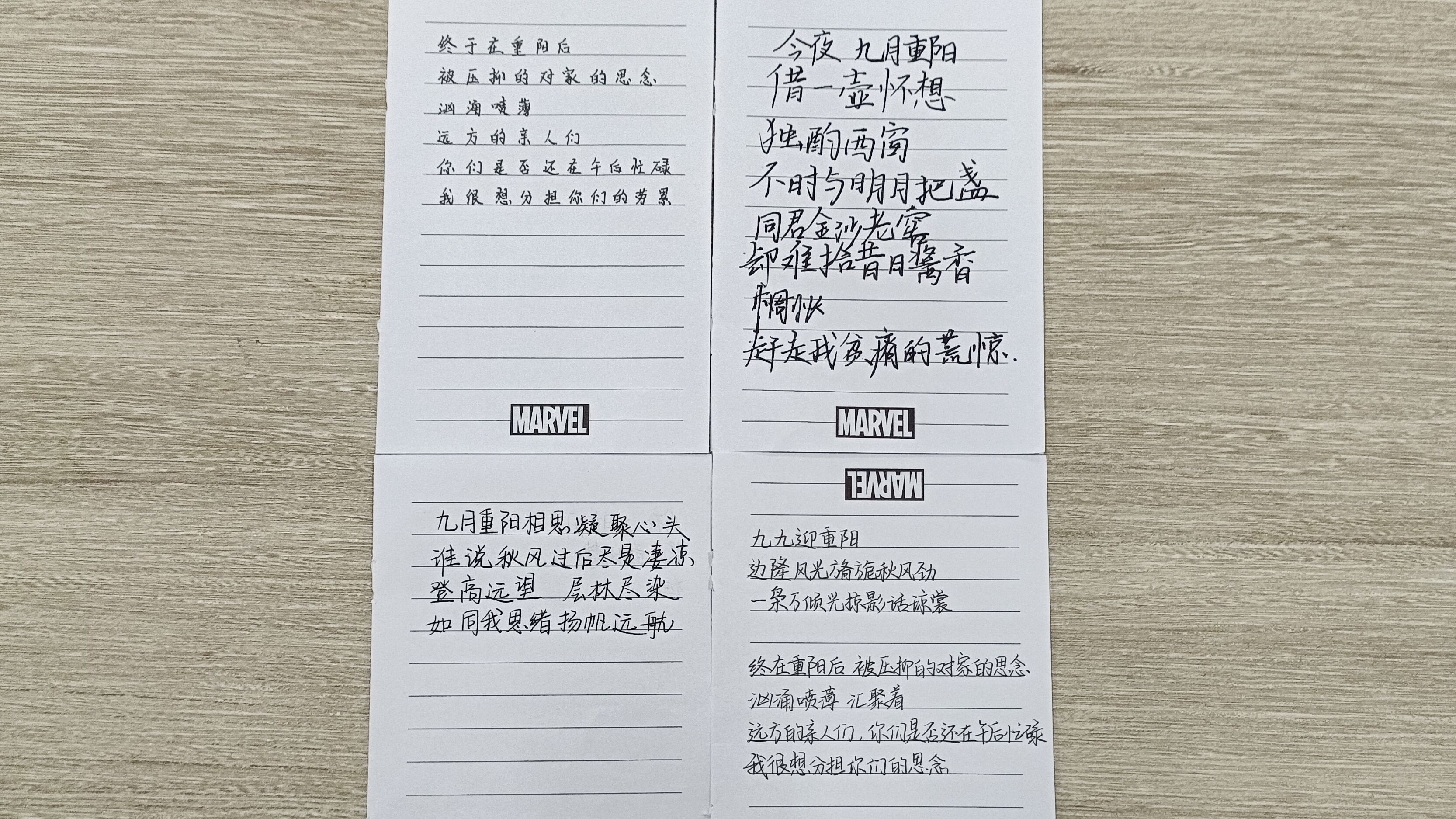 活动中,同学们聚在一起讨论自己对重阳的了解,并上网查找资料,翻阅书籍,以“九九重阳节”为主题,叙写了许多重阳诗歌,“九月重阳相思凝聚心头…”一首首小诗映入眼帘,把我们带入重阳的情怀。