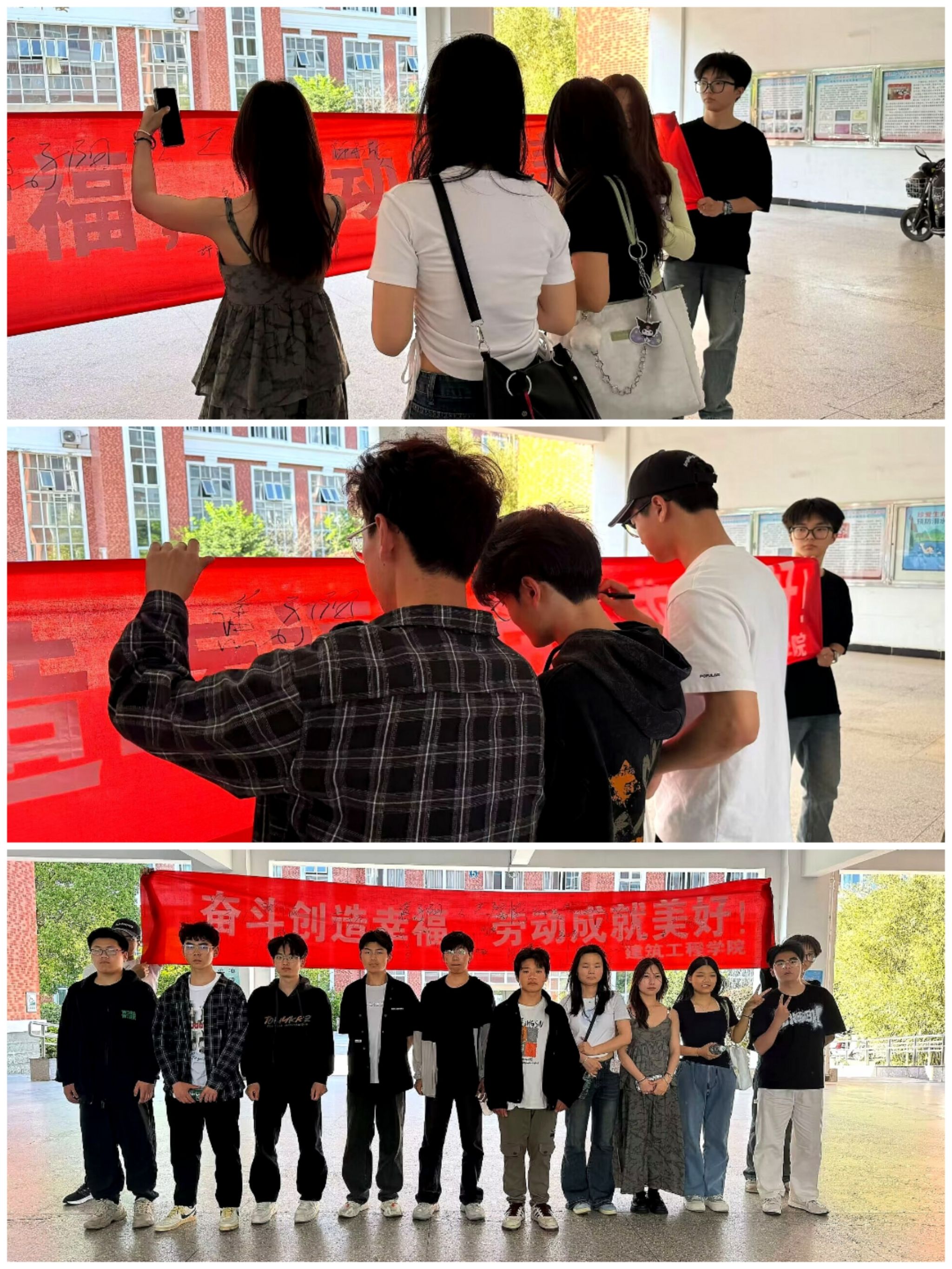 为了弘扬劳动精神,提高同学们的劳动意识,建筑工程学院于5月14日在建筑工程学院四号楼大厅开展了劳动周横幅签字活动,让同学们感受到了劳动的乐趣和价值。