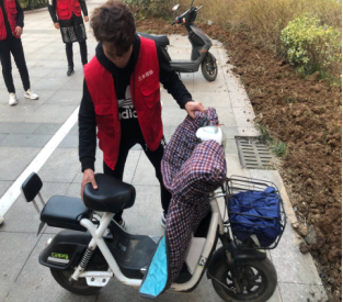 到达花博园后志愿者们发扬不怕苦,不怕累,不怕脏的精神拾捡掉落在地上的垃圾,将花博园周边摆放不整齐的自行车摆放整齐,给予来往需要帮助的游客力所能及的帮助。活动中大家虽然很辛苦但是劳动的快乐都表现在脸上,看到清理干净的路面和摆放整齐的车辆每个人都露出了笑容。