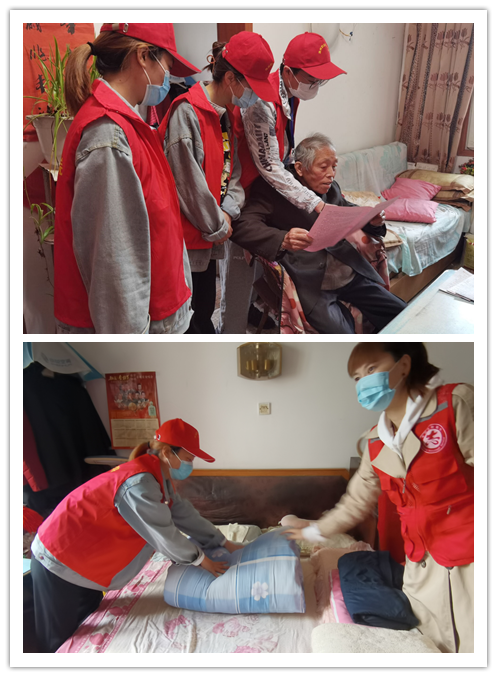 “向阳花”们陪孤寡老人闲话家常,为老人驱走心中的孤单,帮他们整理家务。