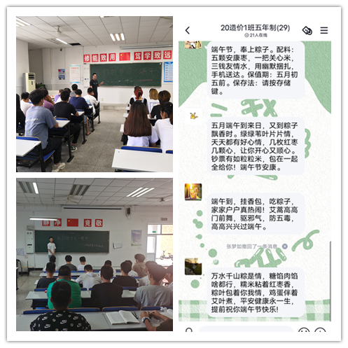 各支部开展线上、线下主题团日活动,同学们回顾端午渊源,了解节日传统,温习屈原爱国故事,感悟中华传统文化的源远流长;经典古诗词抄写活动,让学生在领略中华文化魅力内涵的同时,接受了爱国主义和传统美德教育;防疫卫生大扫除活动中,大家将教室、宿舍卫生打扫得干净整洁,有效夯实了疫情防控基础,传承了防疫祛病、避瘟驱毒的端午习俗。节日期间,同学们为家人包粽子、制香囊、挂艾草,将中华传统文化精神以实践的方式落地生根。