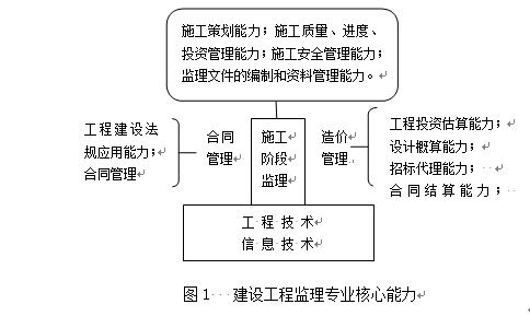 4.课程体系:为实现建设工程监理专业“一体两翼”(以工程技术和信息技术为基础,以施工阶段多专业监理为核心,以造价管理及合同管理为两翼)的专业核心能力,按照职业素质、行业基本能力、岗位能力及拓展的不同要求,构建职业素质基础、行业基本能力、岗位专项能力和职业技能拓展四个课程体系。