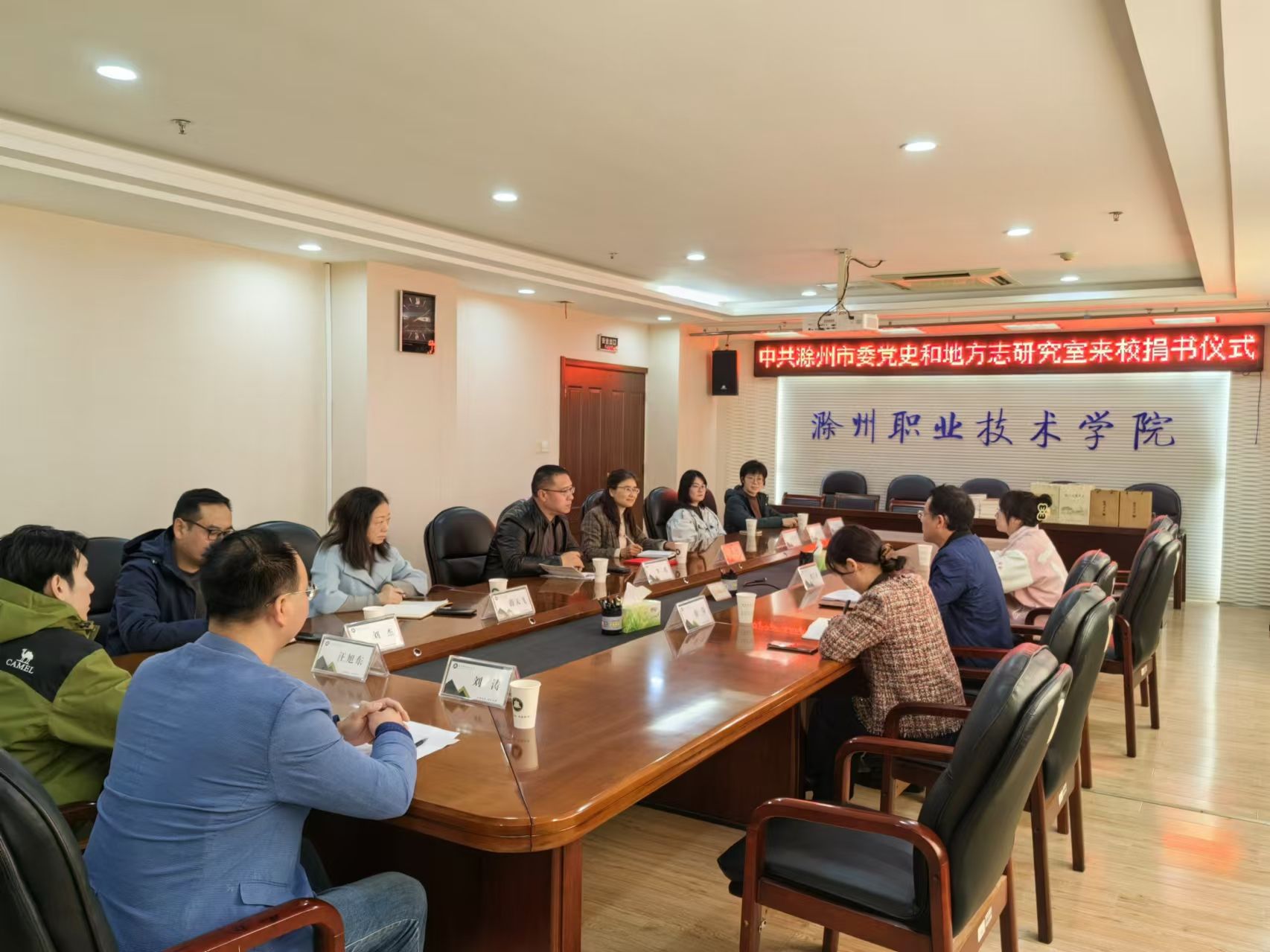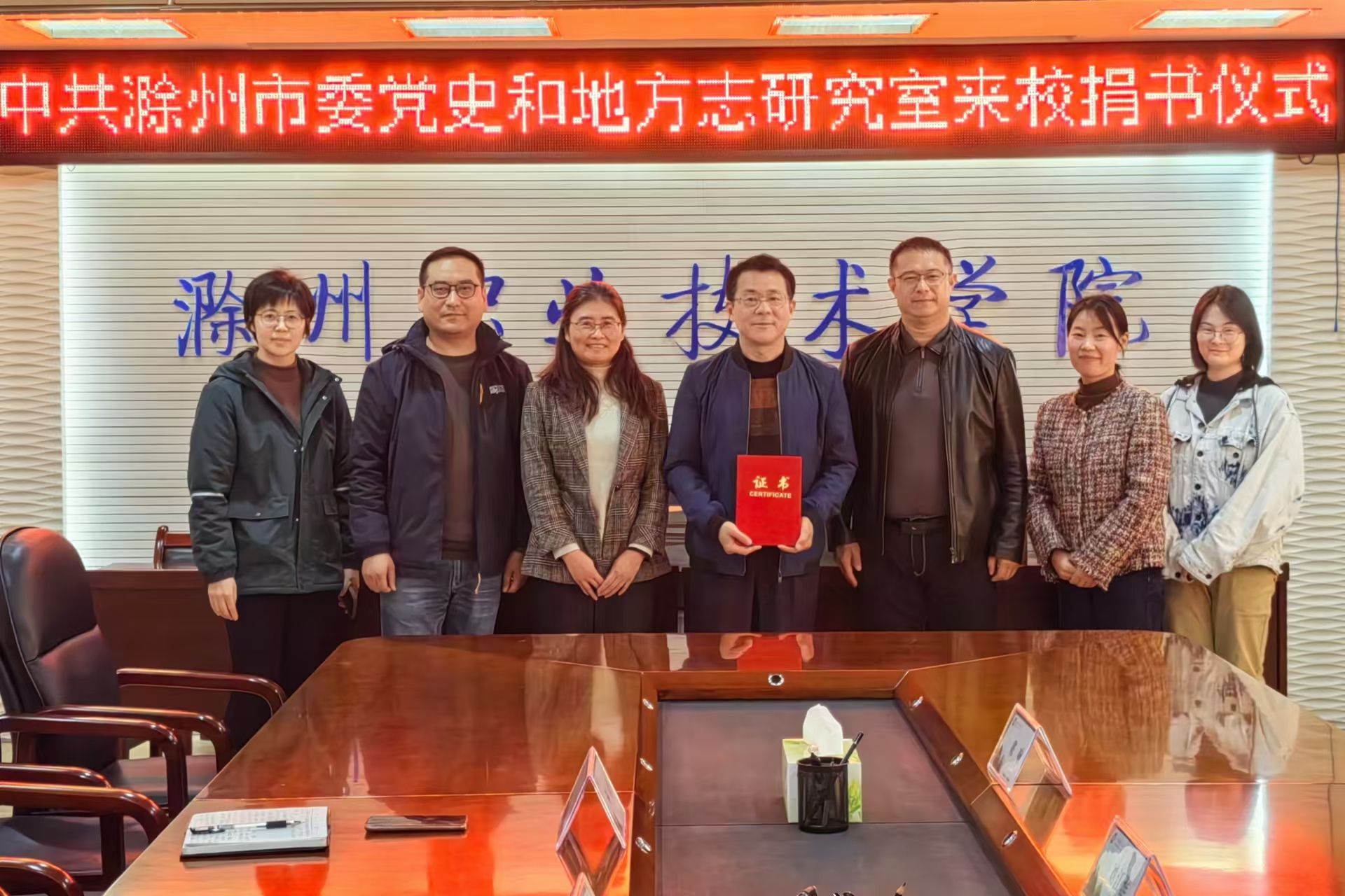 11月22日下午,中共滁州市委党史和地方志研究室副主任刘江淮一行莅临beat365开展捐书活动。校党委委员、商学院党总支书记李超出席捐赠仪式,图书馆馆长林文静、基础教学部书记薛天飞、刘杰副主任和图书馆有关同志参加活动。
