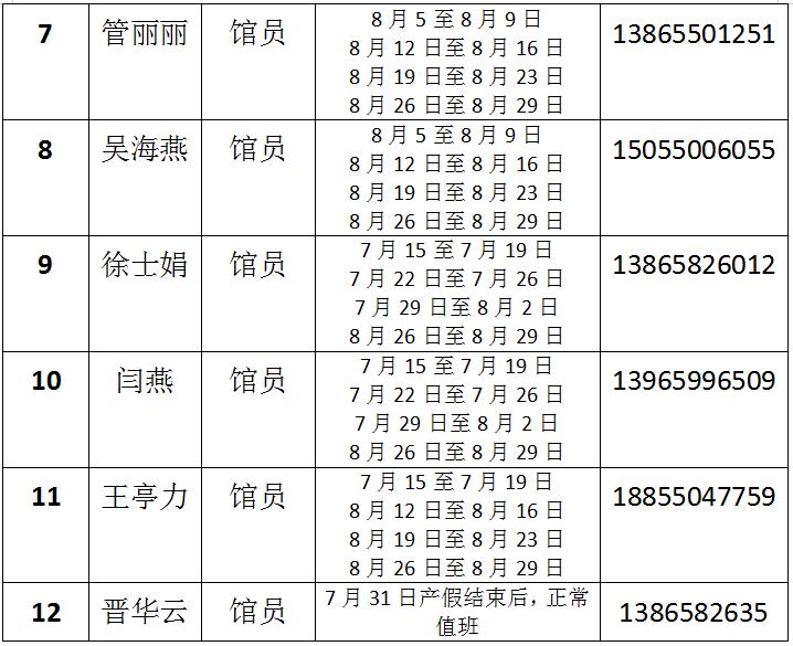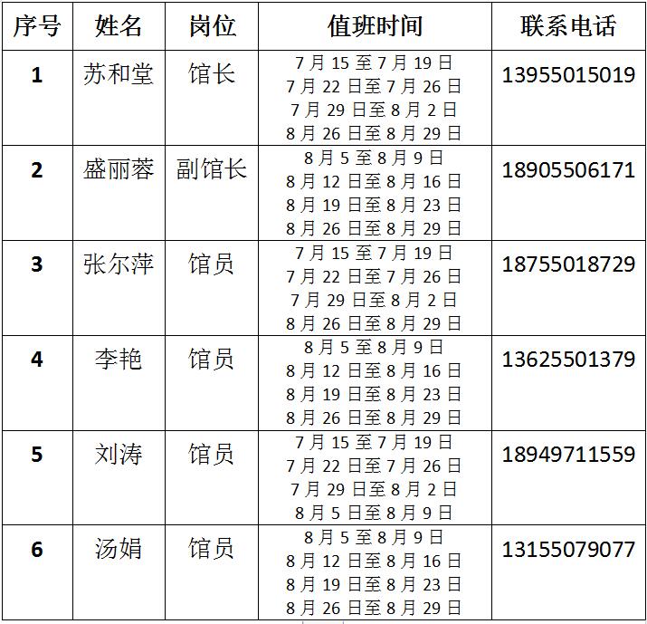 图书馆2019年暑期行管人员值班公告