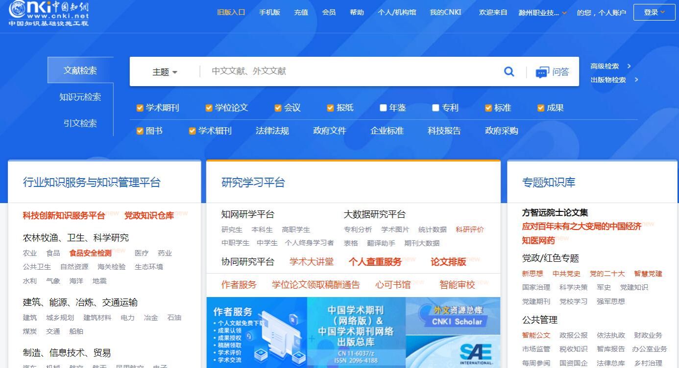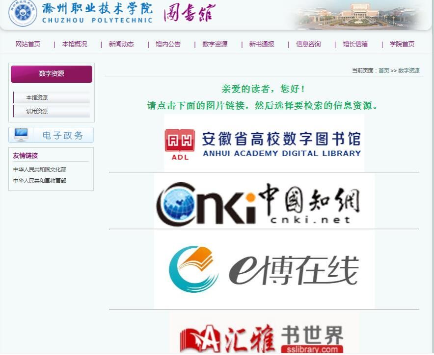 第一步:进入滁职网站主页,点击“图书资料”