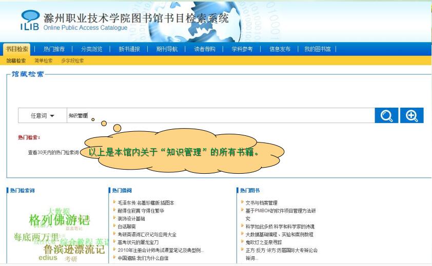 第二步:进入滁职图书馆网站主页,点击“馆藏检索”