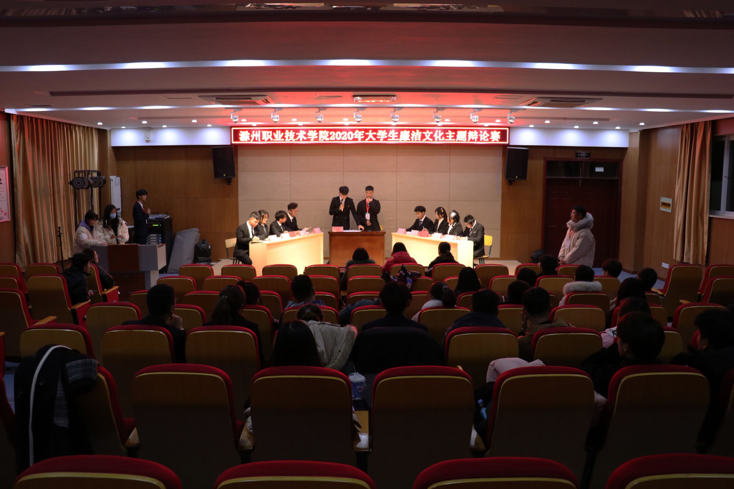 为了进一步丰富校园文化生活,充分发挥廉洁教育在培养人、塑造人过程中的重要作用,培养青年学生尊敬廉洁楷模、推崇廉洁行为的情感,增强大学生从我做起、敬廉崇洁的自觉性,校团委于12月23日在南阶203教室举办了“从我做起敬廉崇洁”主题辩论赛决赛。校党委委员、纪委书记杨华龙出席辩论赛,各二级学院积极参与了此次辩论赛。