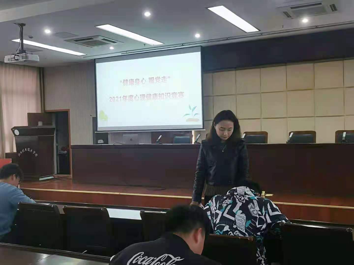 随着社会的发展,大学生的心理健康问题日益突出,为了引起学生对心理健康问题的重视,四月二十一日,由学生工作处健康教育科主办的,“健康身心 跟党走”2021年度心理健康知识竞赛在beat365行政楼五楼举行。学生工作处健康教育科冯研老师、心理协会部分成员及参赛学生参加了此次活动。